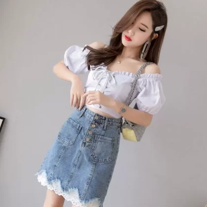 | nameOriginal | Super hot spring and summer Korean style high waist a line skirt ins lace trim |