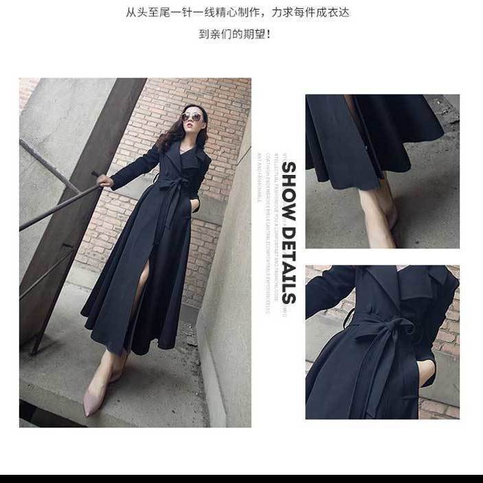 | nameOriginal | Super Long Over-the-Knee Coat Women's 202 New Elegant Slim-Fit Slimming Lace-Up Classic Black Large Size Spring and Autumn Coat |