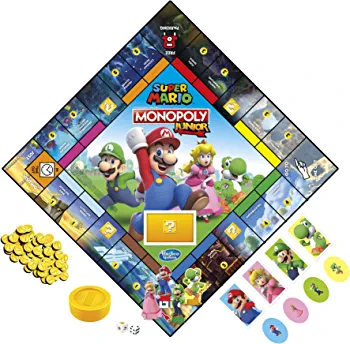 Monopoly Junior Super Mario Edition Board Game, Fun Kids' Game Ages 5 and Up, Explore The Mushroom Kingdom as Mario, Peach, Yoshi, or Luigi (Amazon Exclusive)