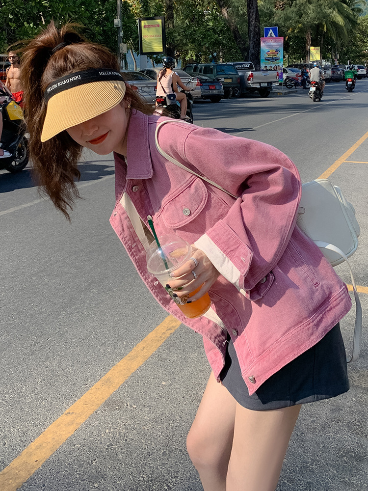 | nameOriginal | Super nice pink Denim coat women's 2024 spring new foreign-style fried street sweet style short jacket |