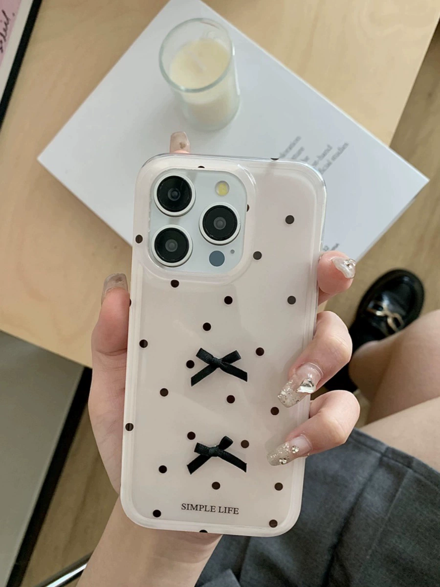 | nameOriginal | Super popular Japanese and Korean black polka dot three-dimensional bow suitable for iPhone14promax Apple 15 mobile phone case 12pro niche max/iphone13 girl model 11 silicone anti-fall hard case |