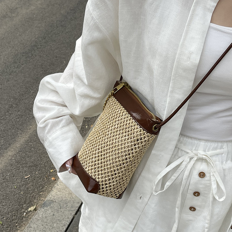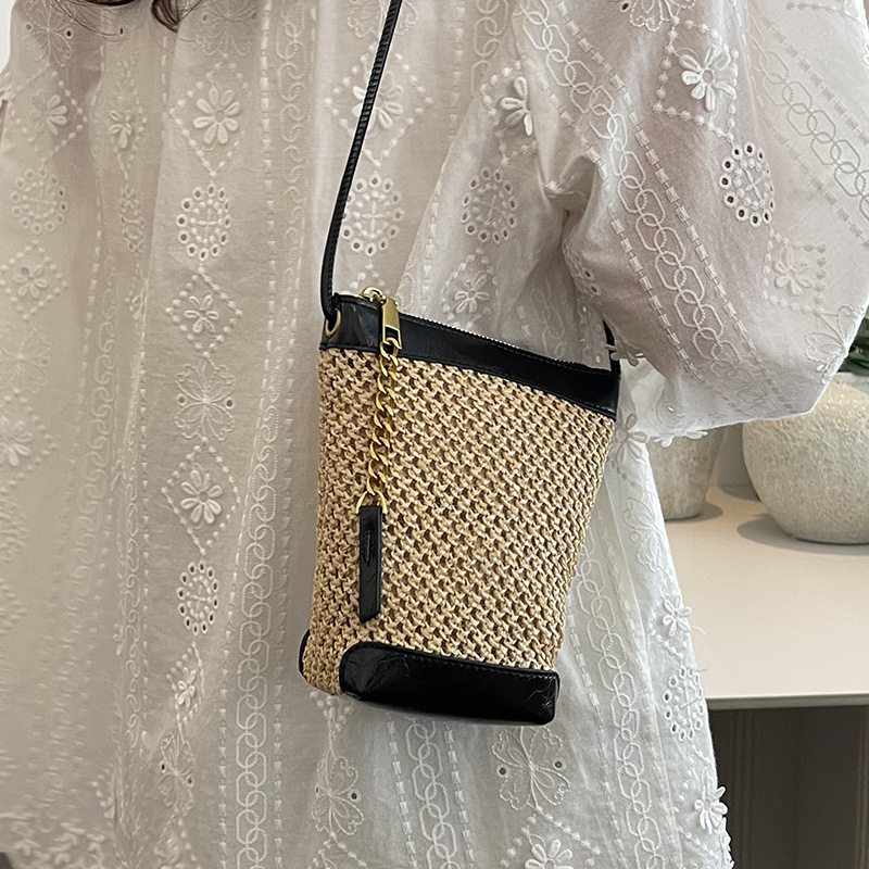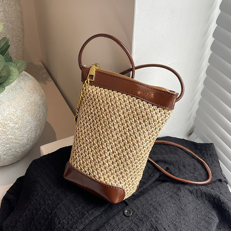 | nameOriginal | Super-popular small group straw bag women's 2024 new summer contrast all-match woven messenger bag bucket bag mobile phone bag |