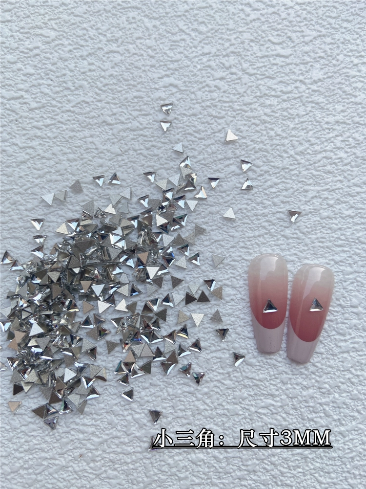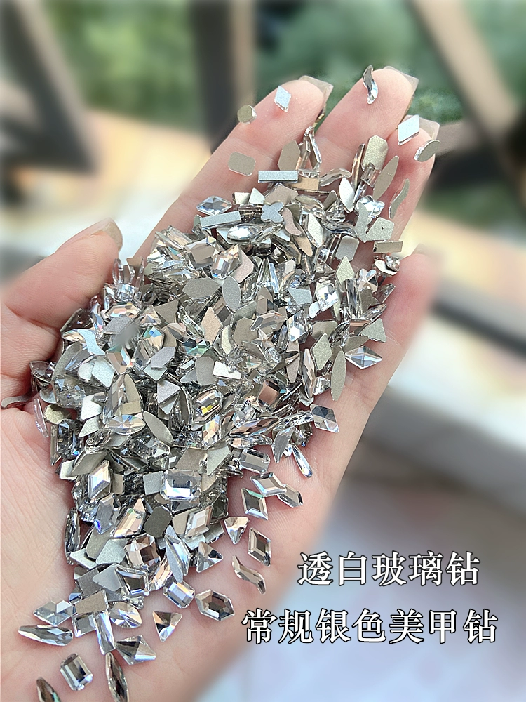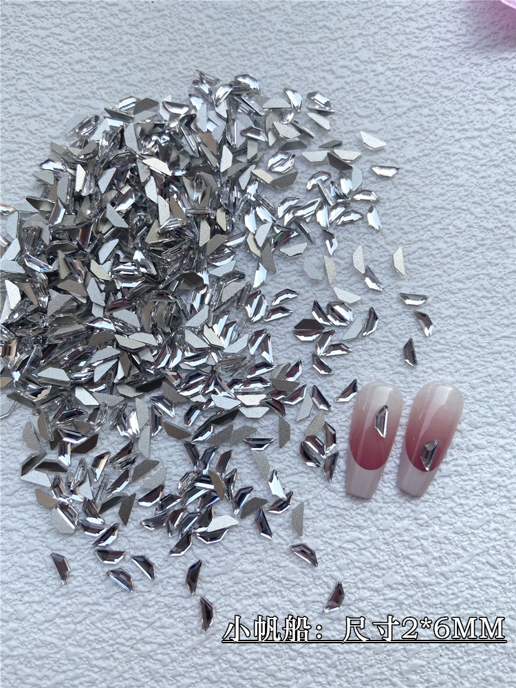 | nameOriginal | Super shiny small silver flat shaped mixed manicure diamonds |