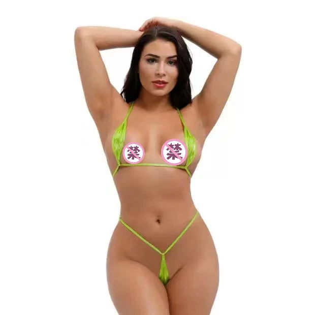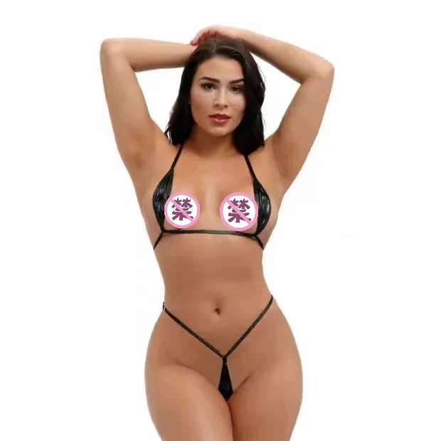 Super small and super sexy strappy halterneck three-point bikini swimsuit set for women hot stamping hot spring lover underwear set