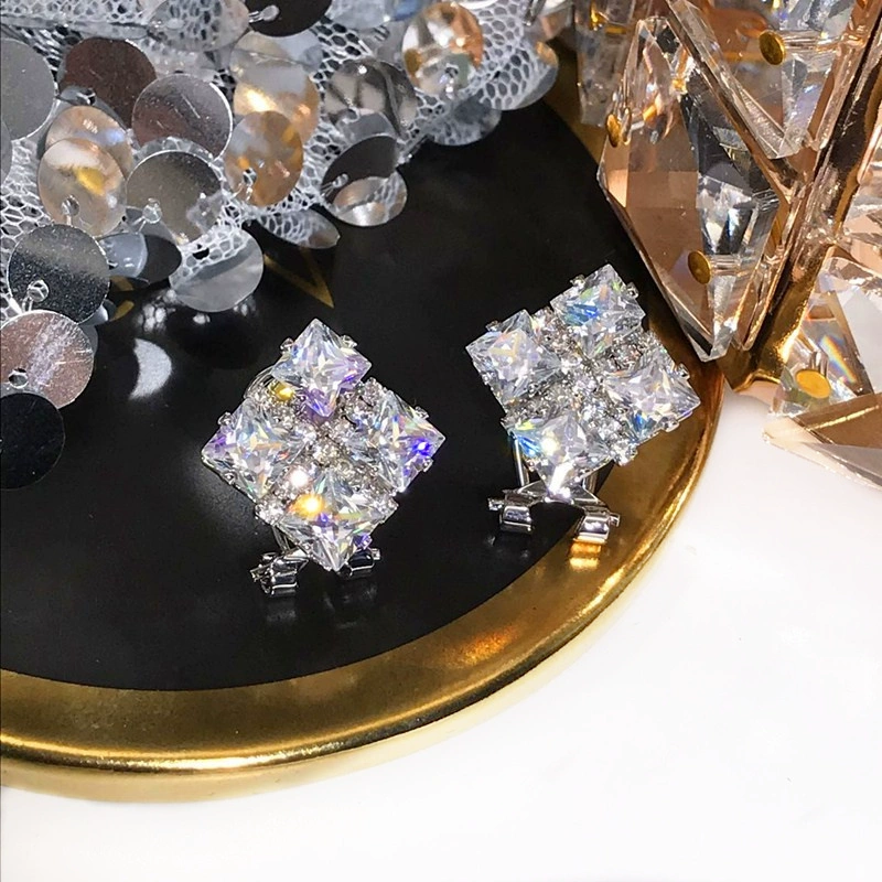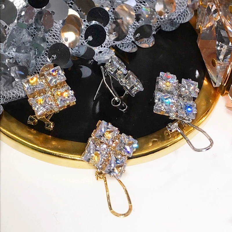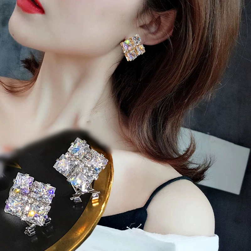 | nameOriginal | Super sparkling exquisite zircon square geometric exaggerated large earrings women's simple earrings versatile high-end stylish trendy earrings |