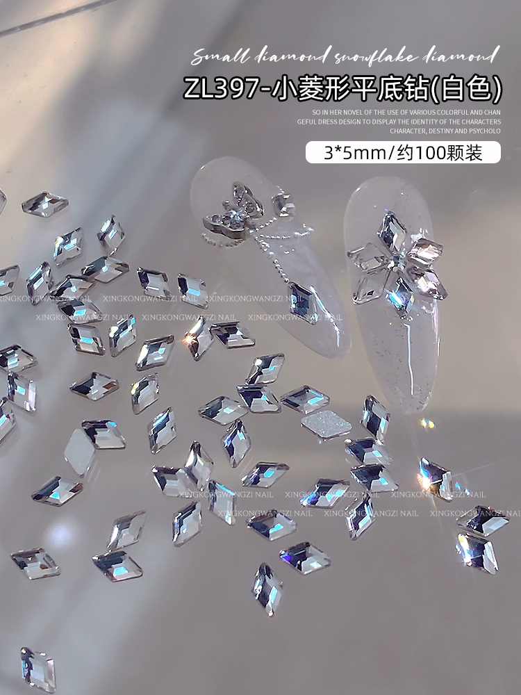 | nameOriginal | Super sparkling white diamond-shaped flat-bottomed nail art diamonds, Internet celebrity hot style mini luxury diamond-shaped snowflake caulking diamonds, about 100 pieces |