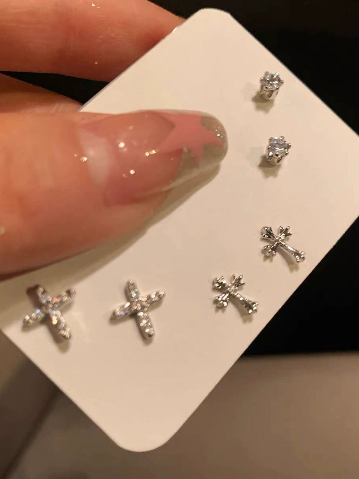 | nameOriginal | Super sparkly cross, hot style, fashionable and internet celebrity earrings |