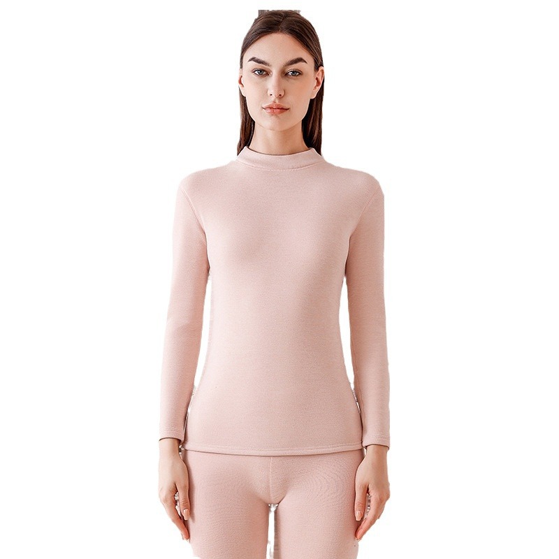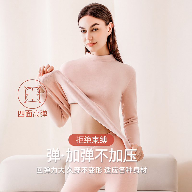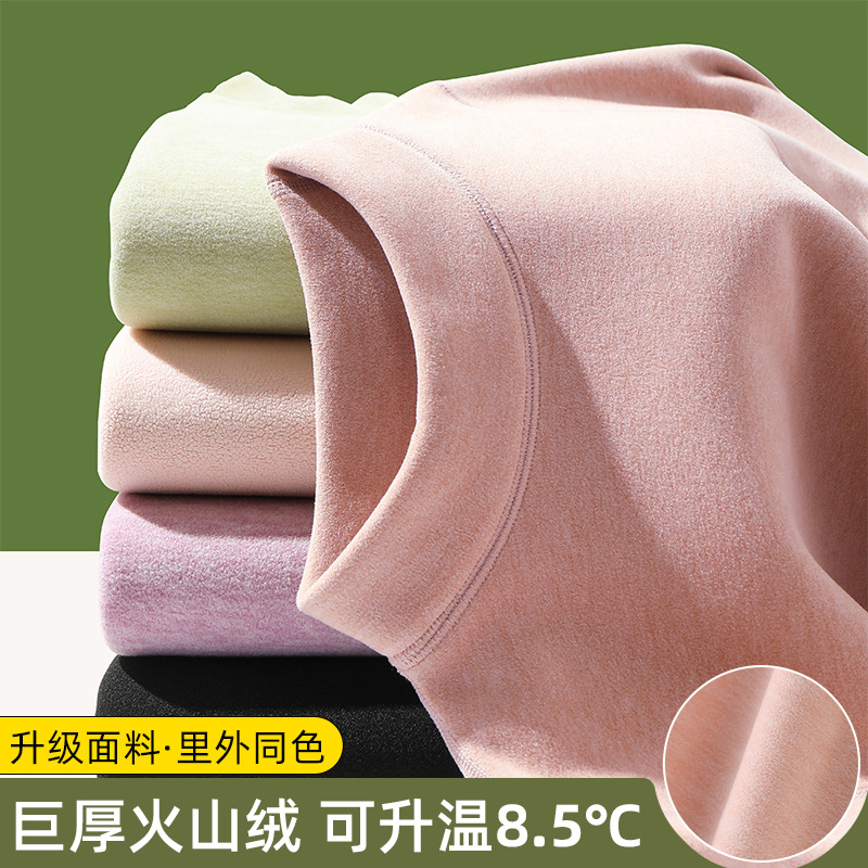 Super thick half turtleneck volcanic velvet thermal underwear suit women’s fleece-lined thickened winter mid collar velvet heating autumn clothes long pants