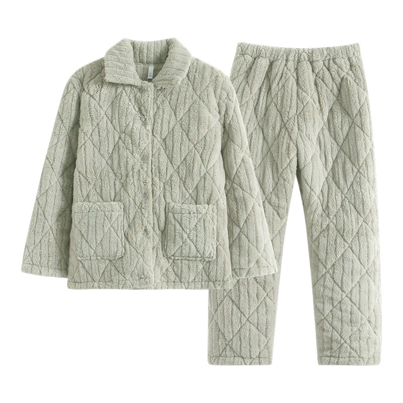 | nameOriginal | "Super Thick" Warm Pajamas for Women Winter Three Layers Thickened Plus Velvet Quilted Coral Fleece Cotton Jacket Light Green Striped Home Clothes |