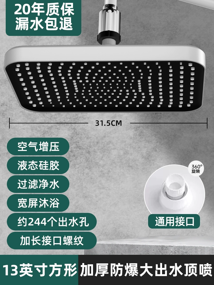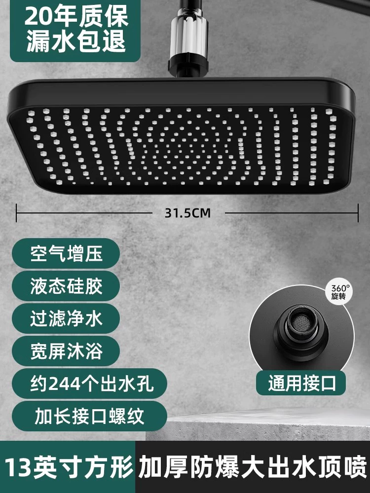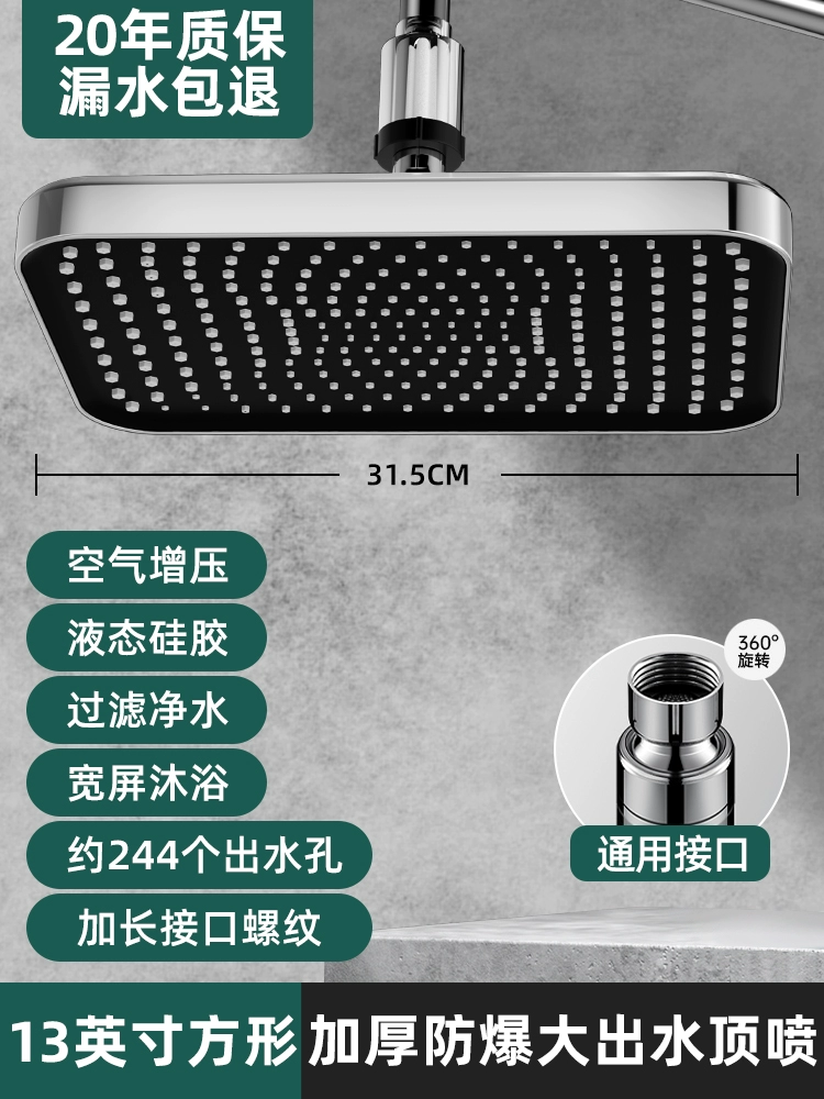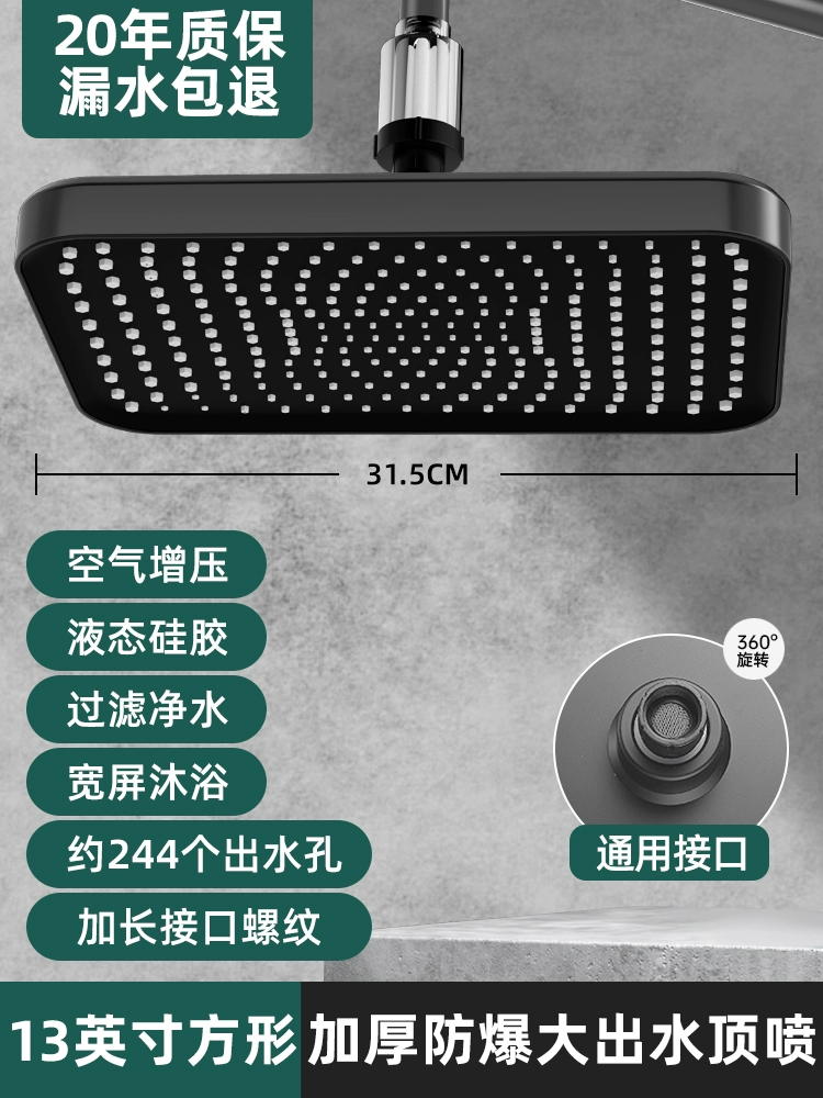 | nameOriginal | Supercharged top spray bath heater with large water outlet shower head filter |