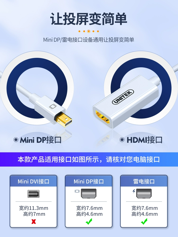 Superior mini dp to hdmi high-definition cable lightning adapter projector transfer interface desktop computer universal thin notebook adapter cable TV converter