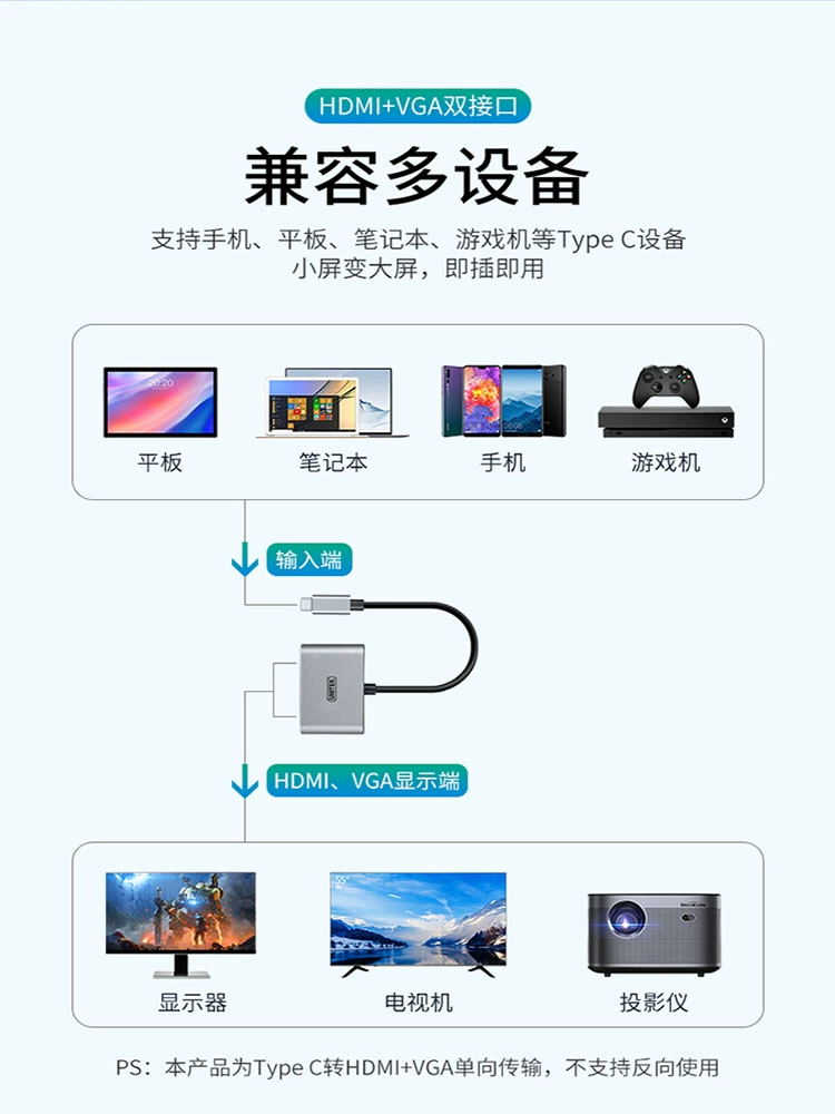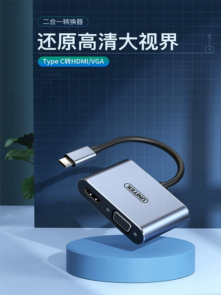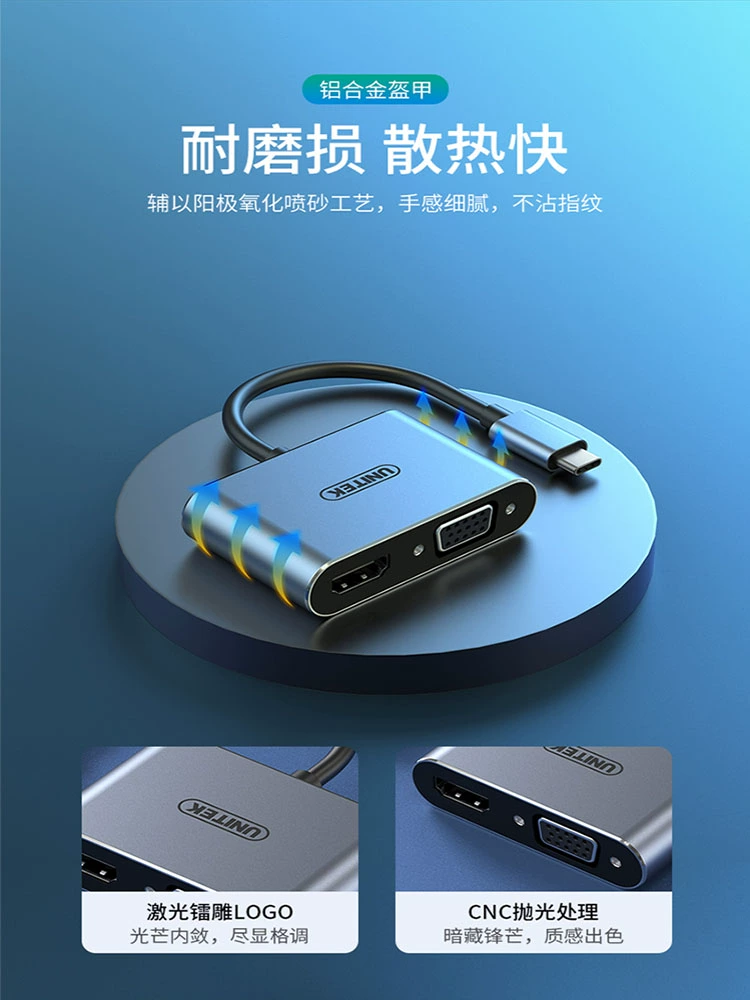 | nameOriginal | Superior unitek type-c docking station one-to-two computer to hdmi+vga dual display conversion cable V124A |