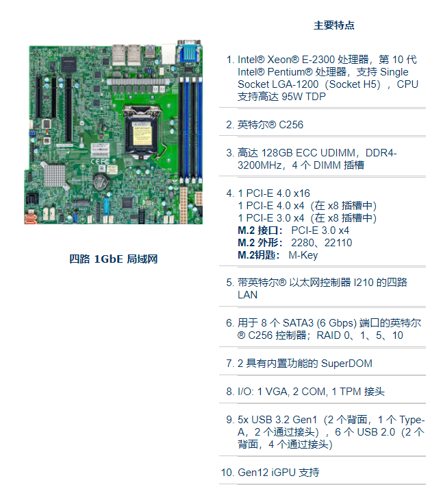 | nameOriginal | Supermicro X12STH-LN4F C256 server motherboard, Xeon E-2300, four Gigabit network port, E-2388 |