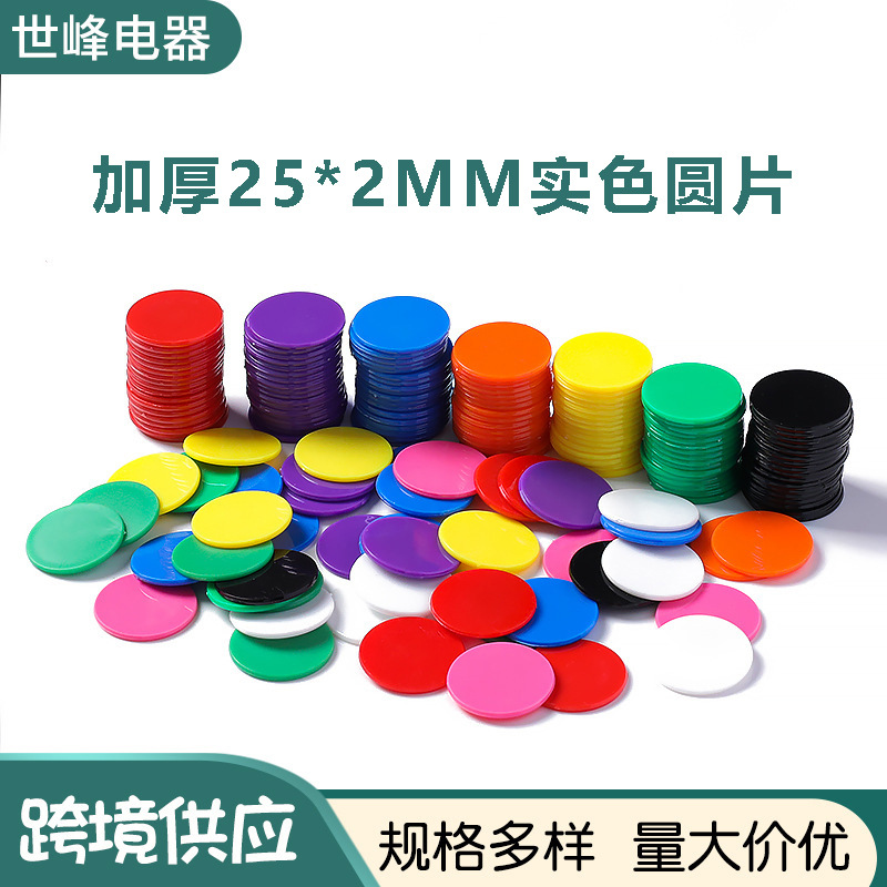 Supply thick 25*2mm solid color small disc plastic ornaments color chips round card early education game points coin