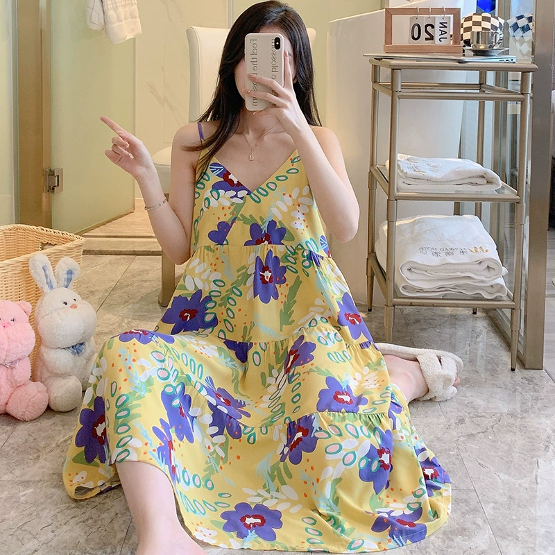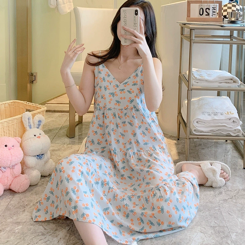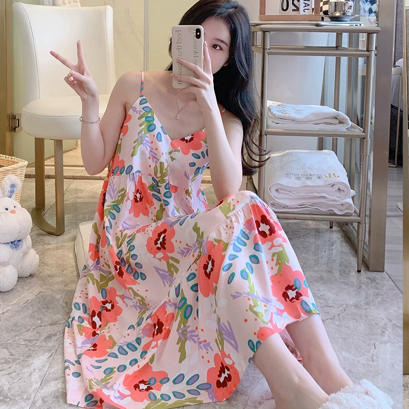 | nameOriginal | Suspender nightgown women's summer pajamas 2023 new cotton silk tie-dye Mori women's large size cotton silk thin home clothes |
