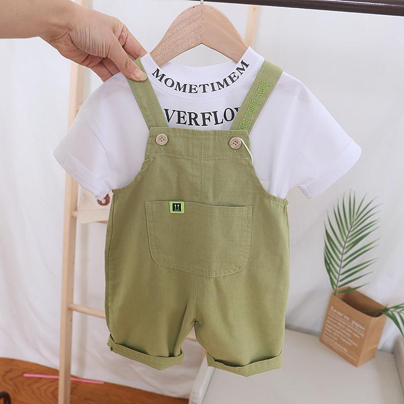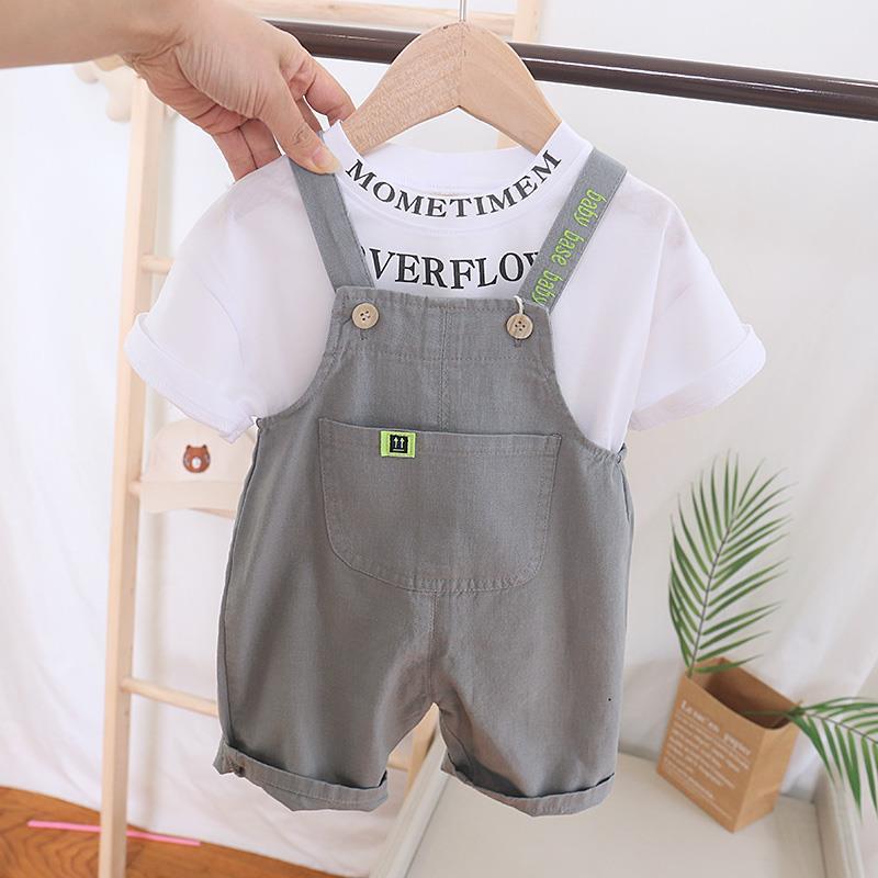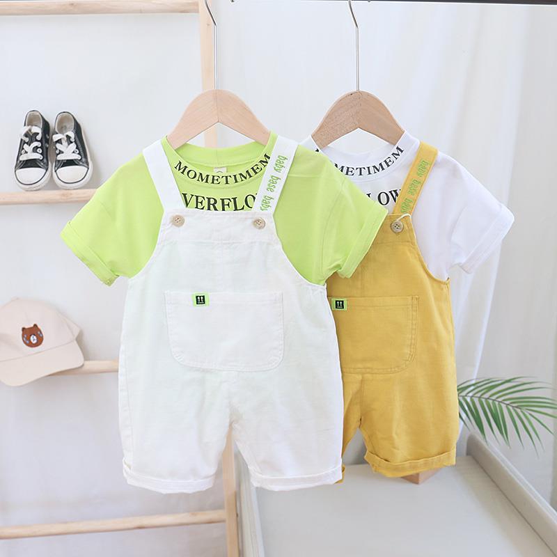 Suspender pants baby boy suit summer thin-year-old men’s and Women’s Open jumpsuit Western style short sleeve two-piece suit
