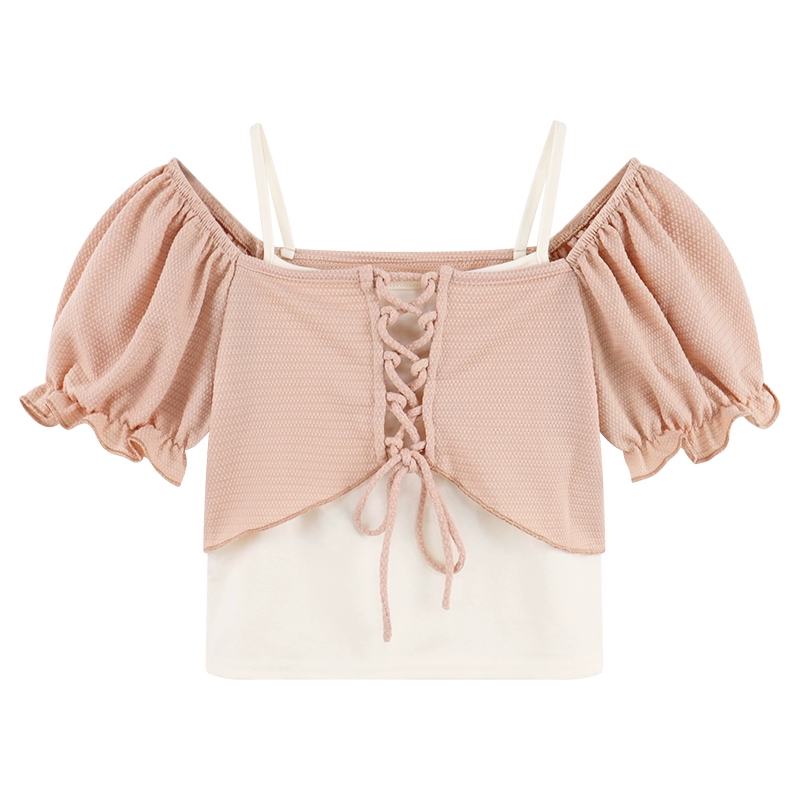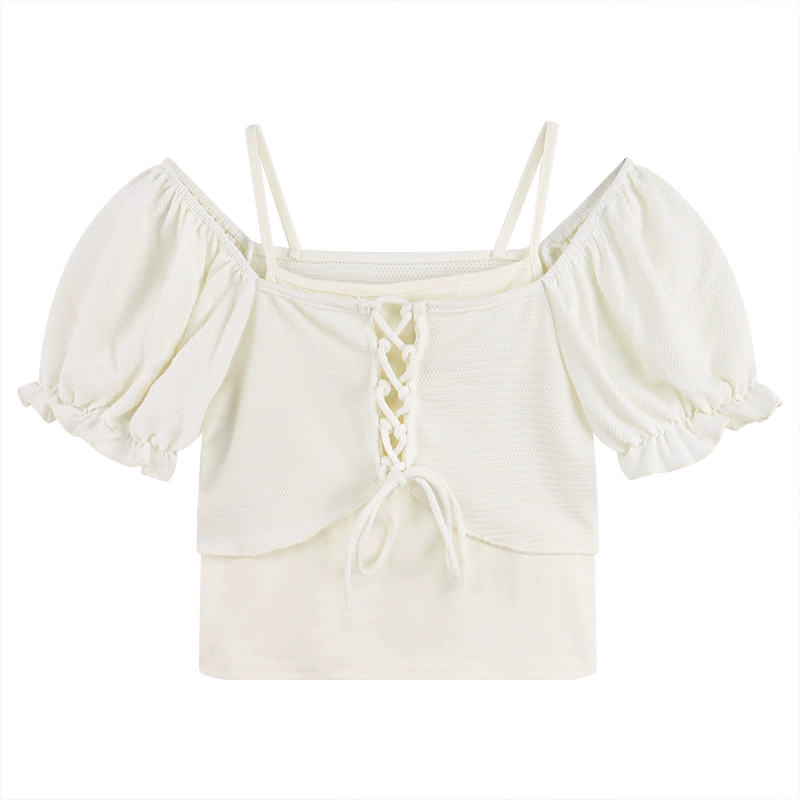 | nameOriginal | Suspender short-sleeved summer slim-fitting tops fake two pieces |