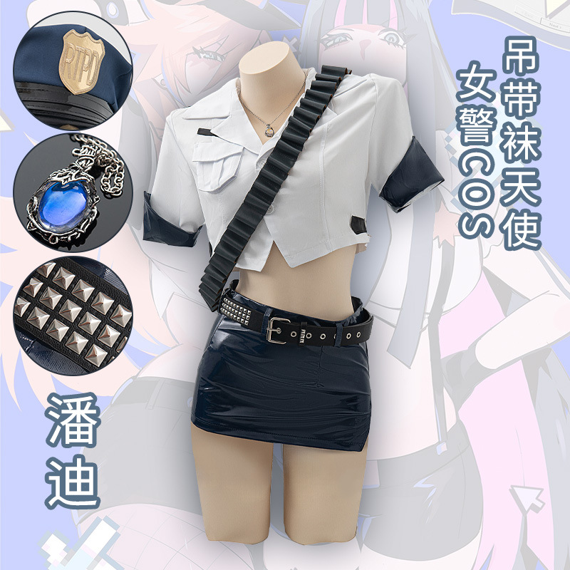 | nameOriginal | Suspender socks Angel cos Pandi Panty leather skirt female police cartoon hand office same full set cosplay clothing |