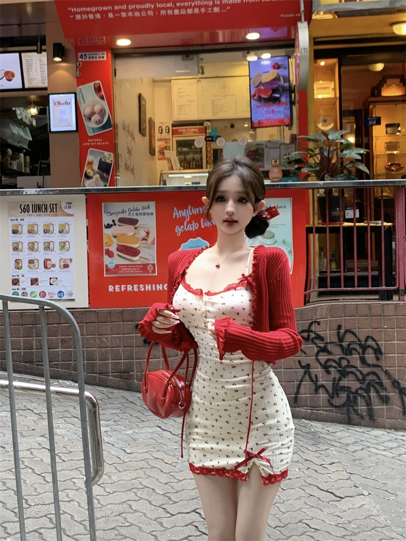 Suspender summer slim fit sweet girl hip skirt with bow tie