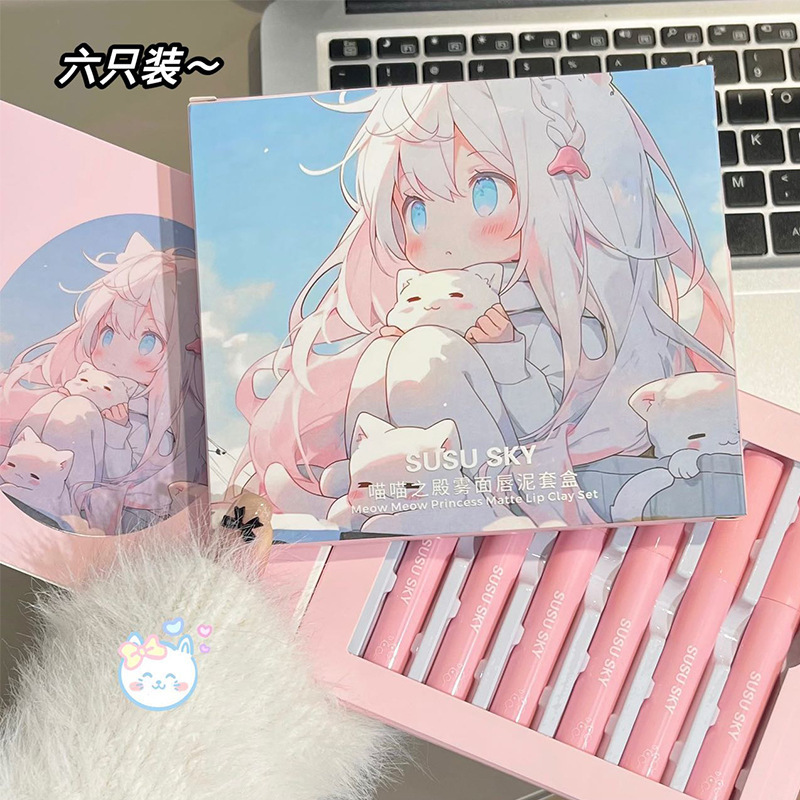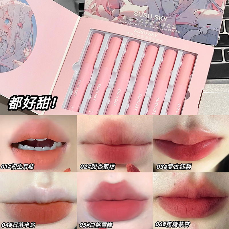 | nameOriginal | SUSU SKY Meow Temple Lip Mud suit Matte Velvet Fog White Not Fading Six Pack for Students |