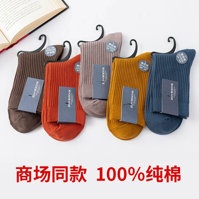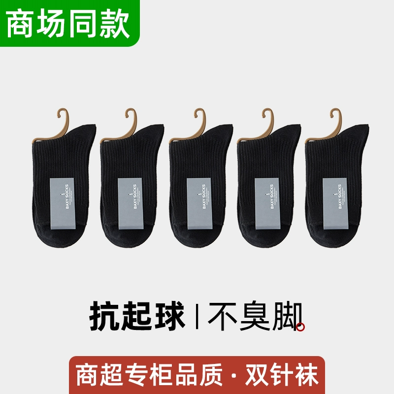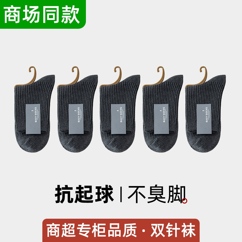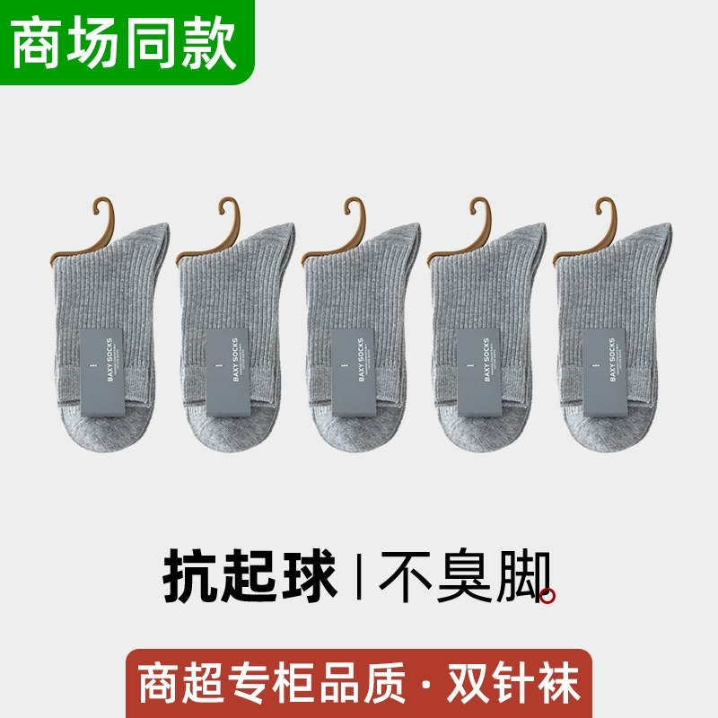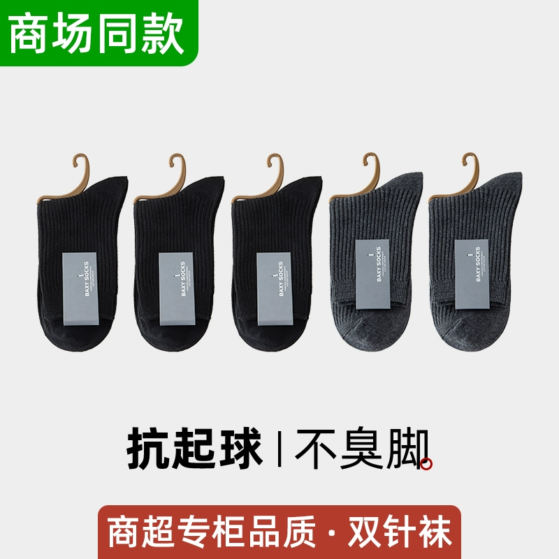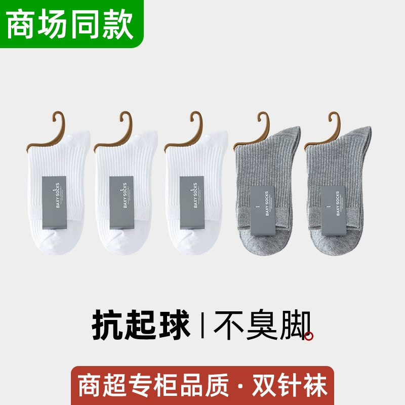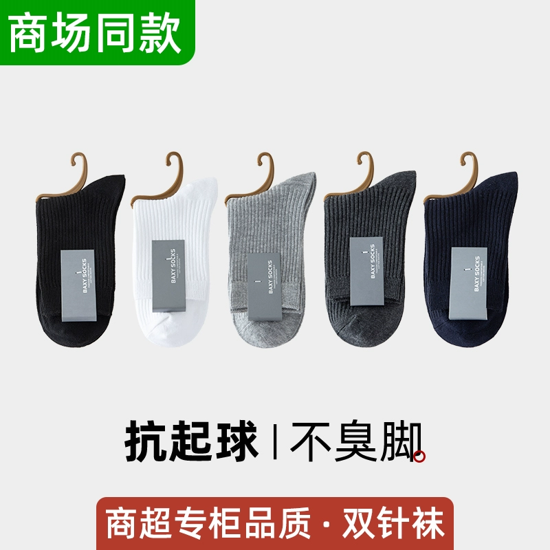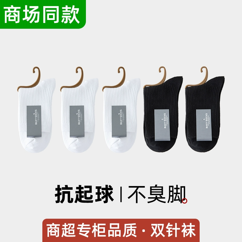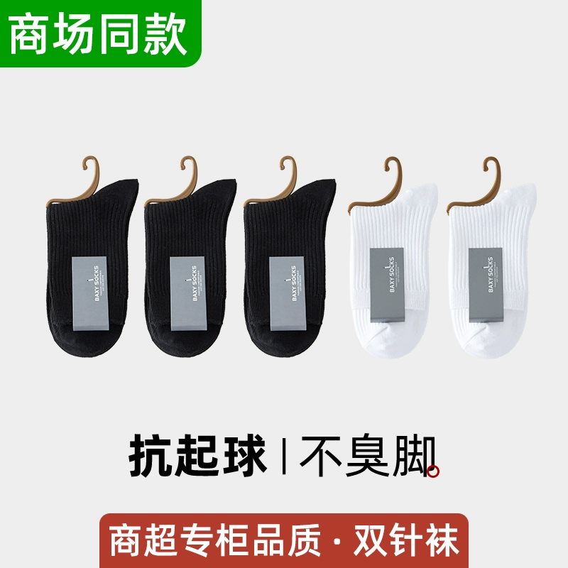 Sweat-absorbent and odor-resistant black and white spring and autumn double-needle thick socks yarn