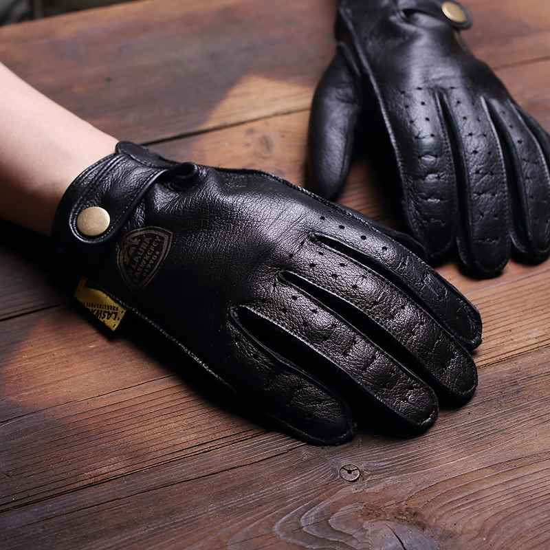 Sweat-absorbent cowhide leather gloves for motorcycle driving, commuting and drag racing