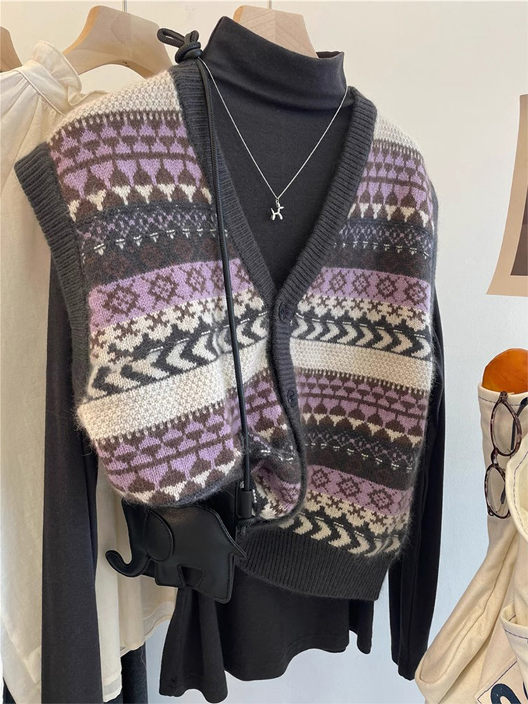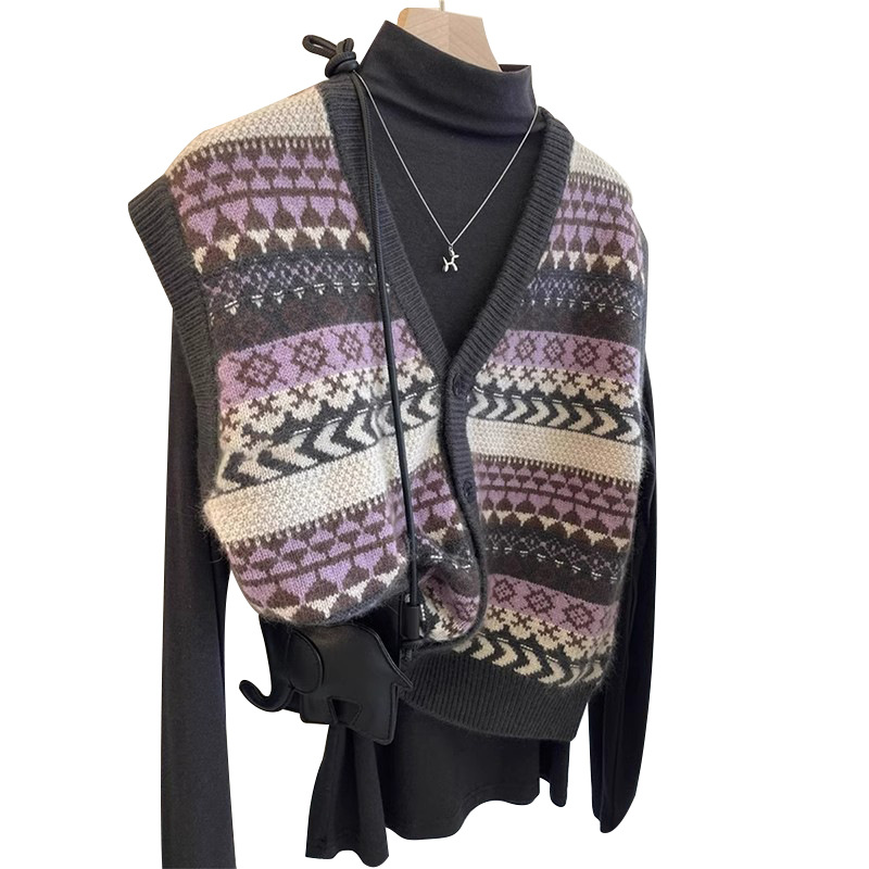 Sweater knitted cardigan vest for women spring/autumn/winter New 2024 vest outer wear overlapping bottoming shirt Chanel style suit