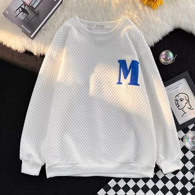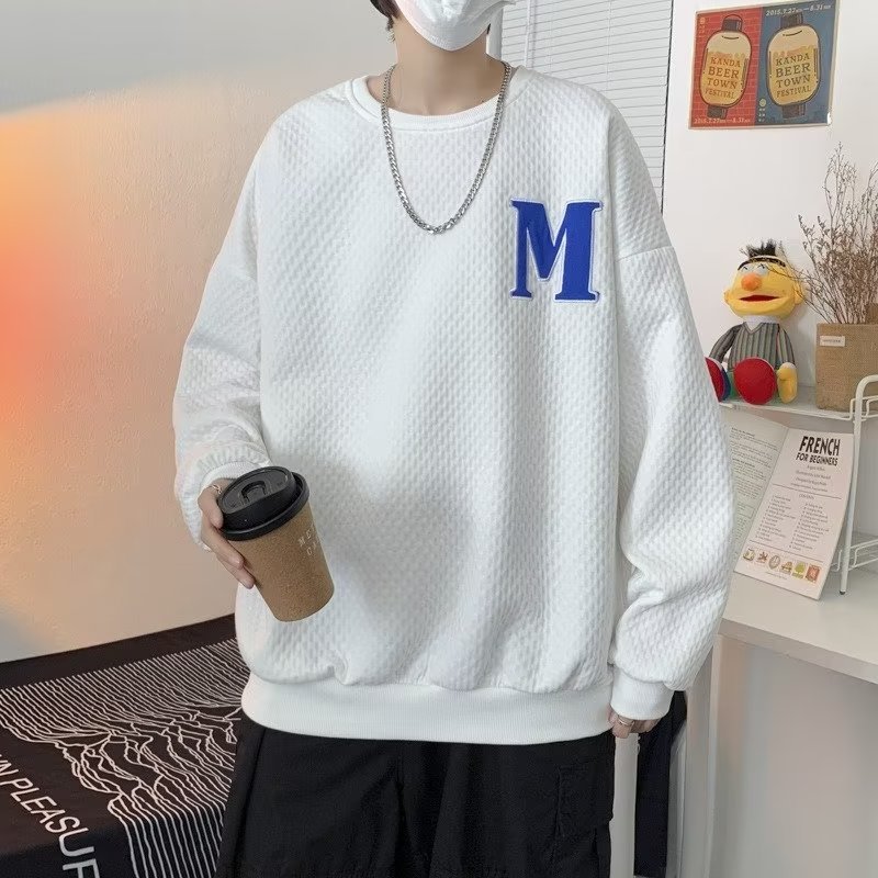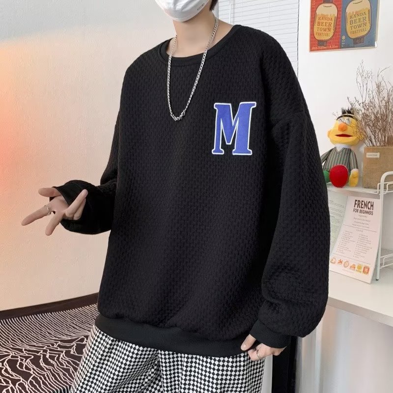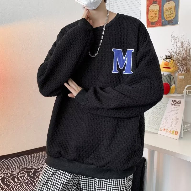 | nameOriginal | Sweater men's waffle loose Hong Kong style ins versatile pullover long sleeve top autumn and winter fashion brand embroidered letter coat |
