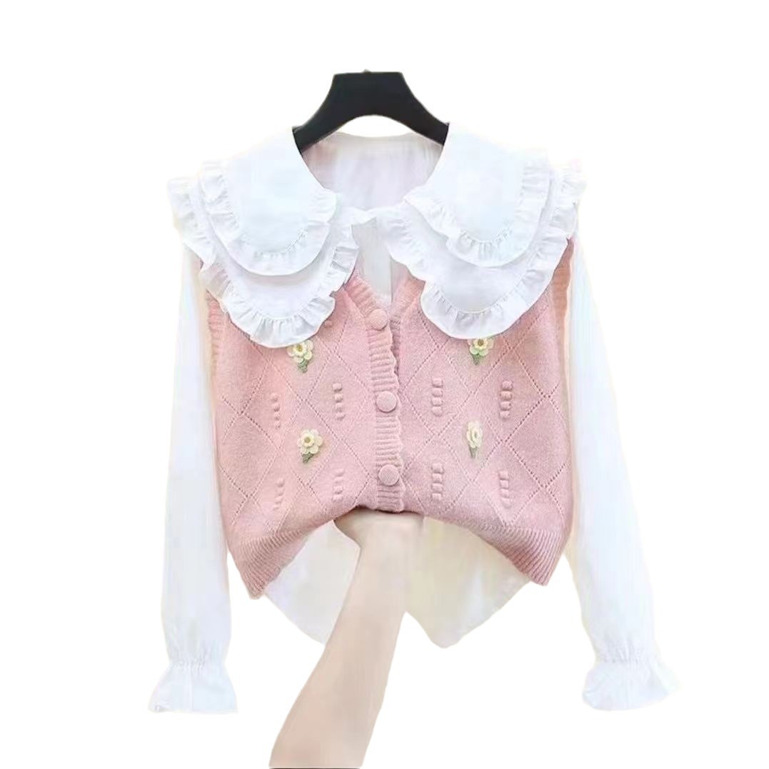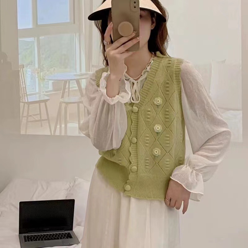 | nameOriginal | Sweater Vest Women's Spring and Autumn New Japanese Stacked Waistcoat Cardigan Loose Short Sweet Knitted Vest Top |