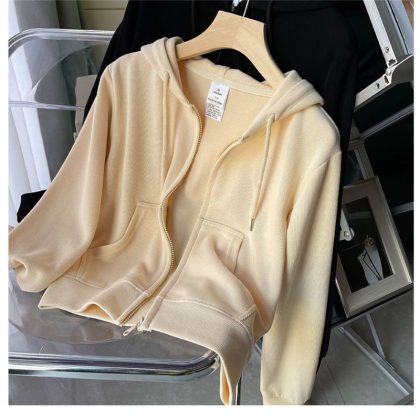 | nameOriginal | Sweater Women's Hooded Thin Spring and Autumn New Korean Style Loose Design Sense Niche Solid Color Cardigan Short Jacket |