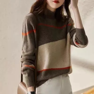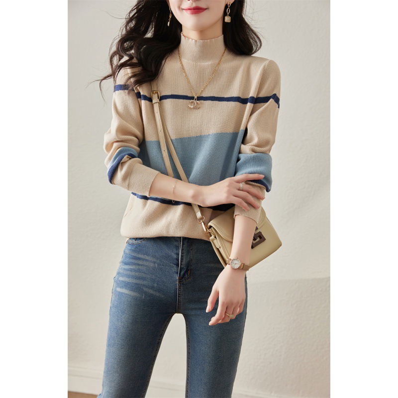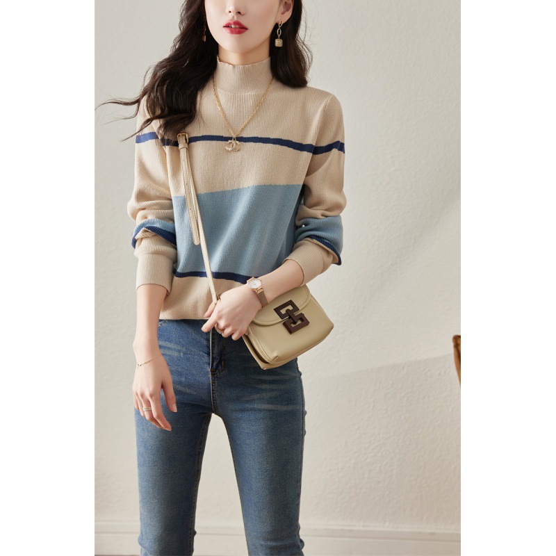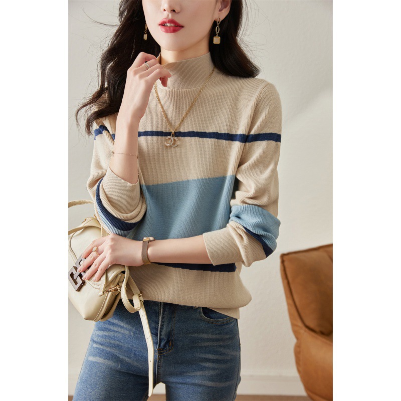 | nameOriginal | Sweater Women's Pullover Spring 2022 New Style Western Style Knitted Sweater Korean Style Loose Sweater Half High Collar Base Shirt |