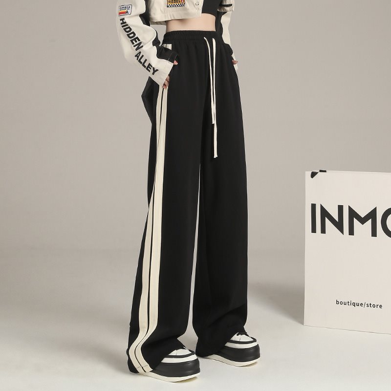 | nameOriginal | Sweatpants Spring and Autumn Wide Leg Pants Black Sports Pants Women's 2024 Slimming Pants New Student Summer Casual Straight Pants |