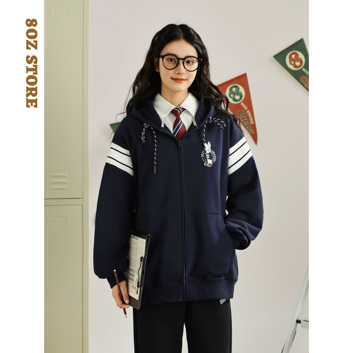 Sweatshirt 8OZ college style contrast patchwork loose cardigan