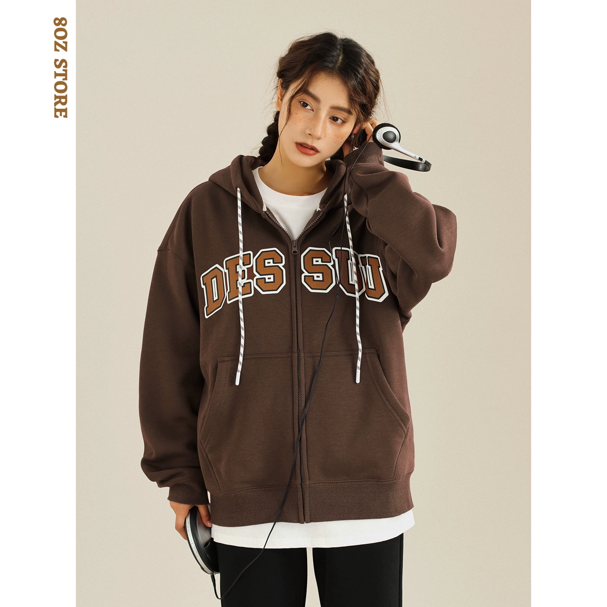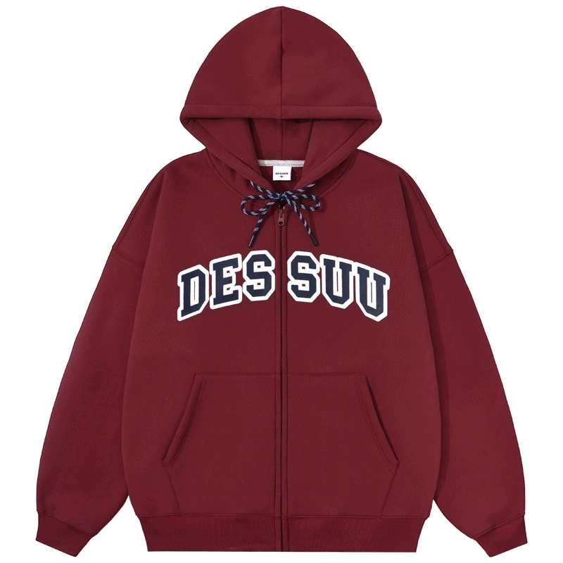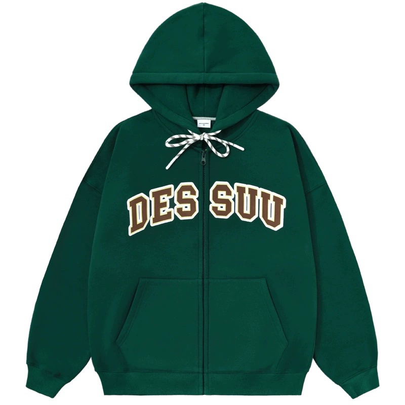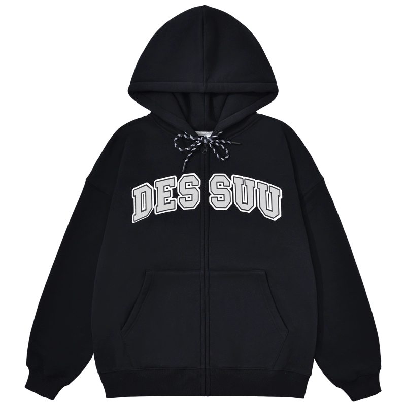 Sweatshirt 8OZ college style letter print velvet cardigan