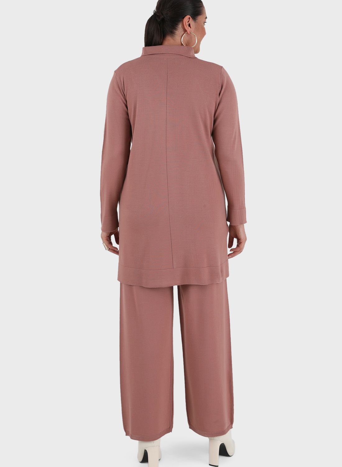 Sweatshirt and pants set with a polo neck.