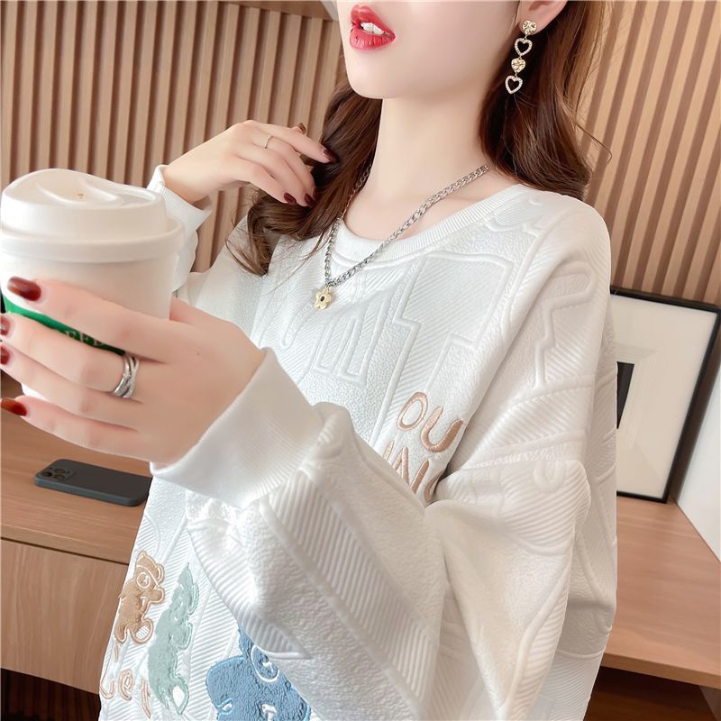 Sweatshirt Women's Early Spring New Korean-style Loose Niche Design Sense Bear Stylist Student Round Neck Long Sleeve Top