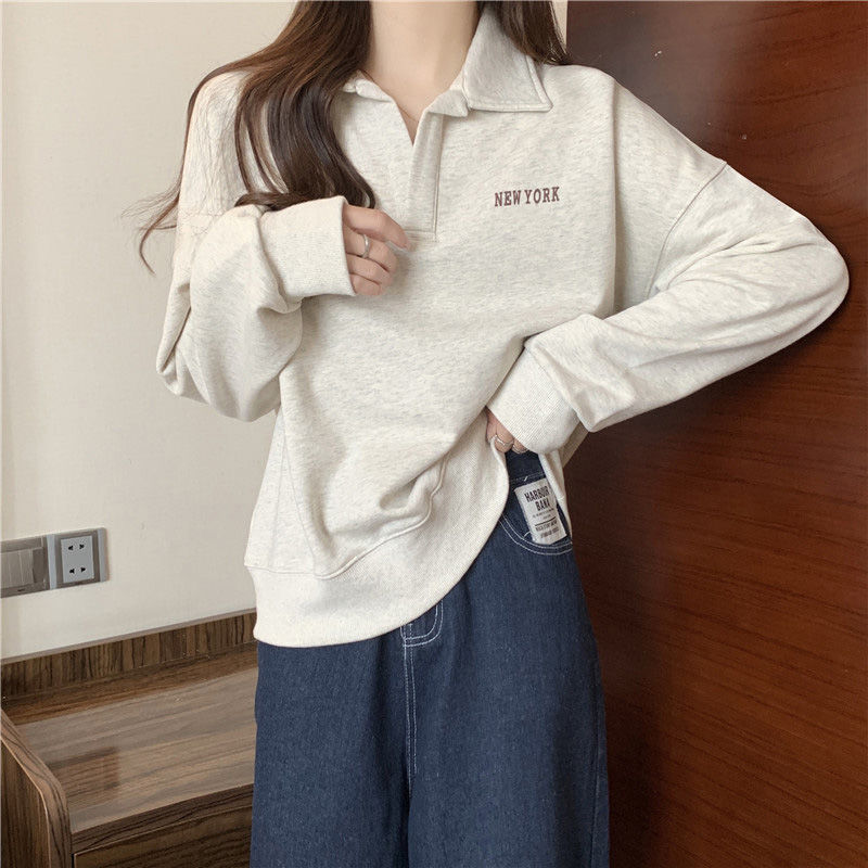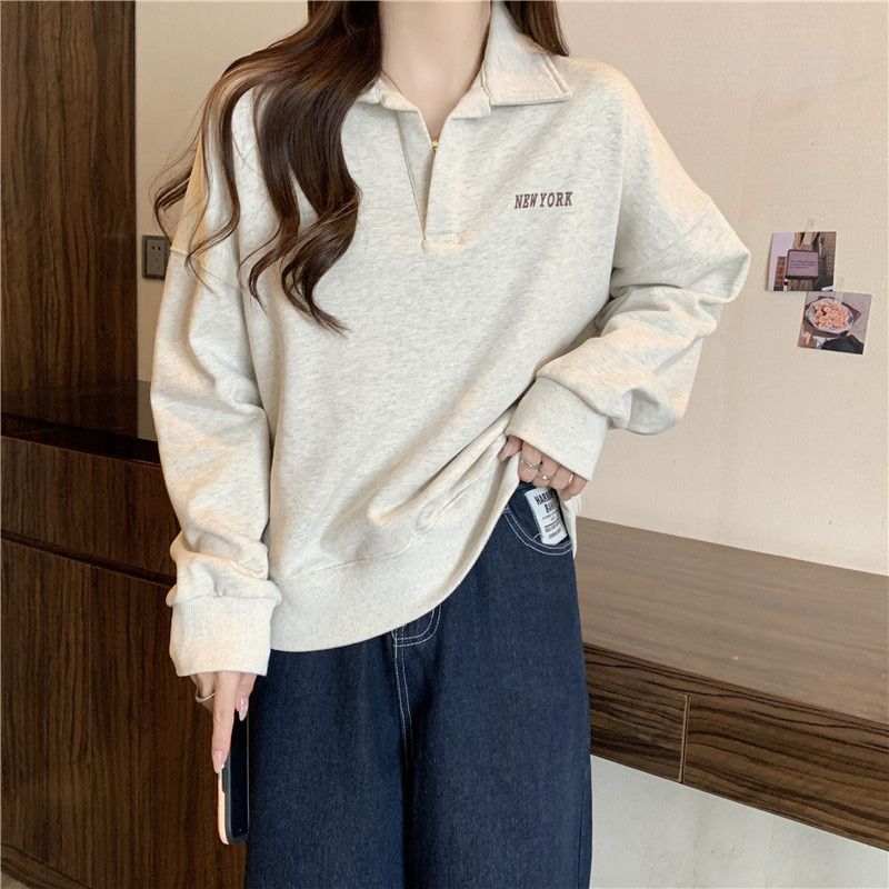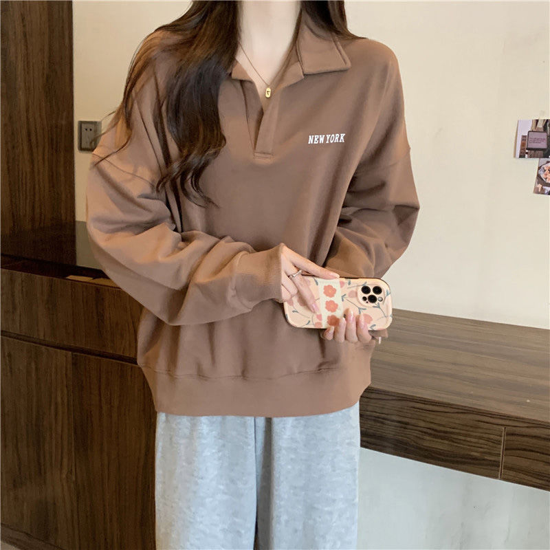 Sweatshirt Women’s Spring and Autumn Thin plus size Women’s Loose Lazy Style American Style Retro College Style Polo Collar Top