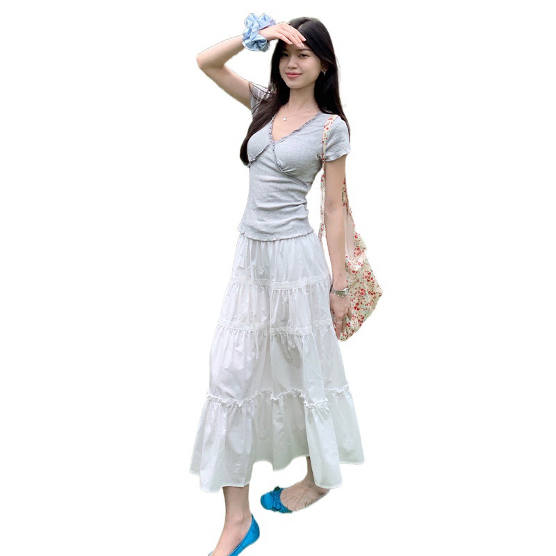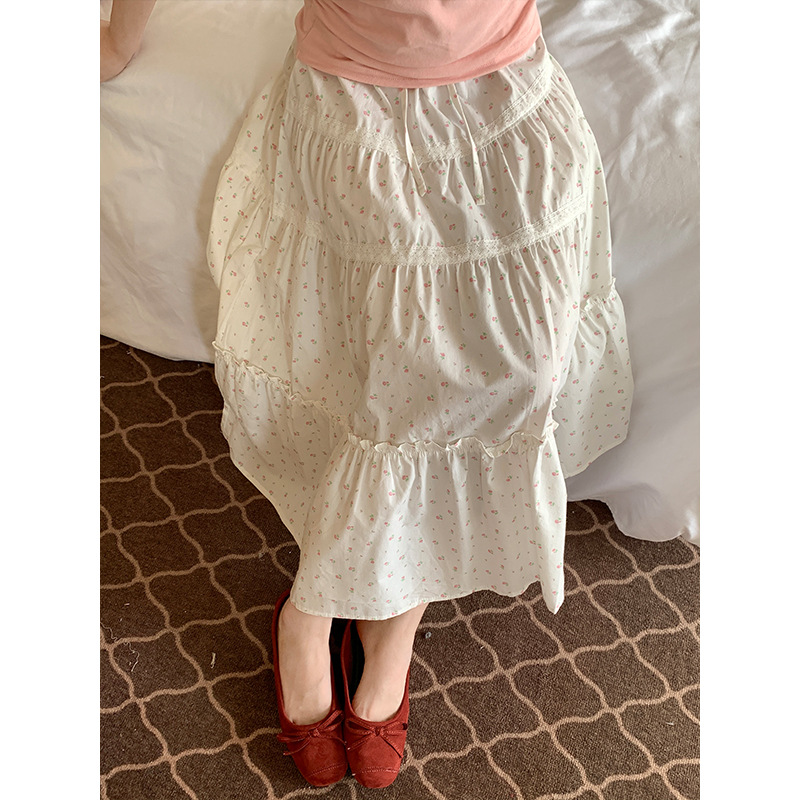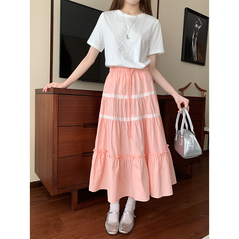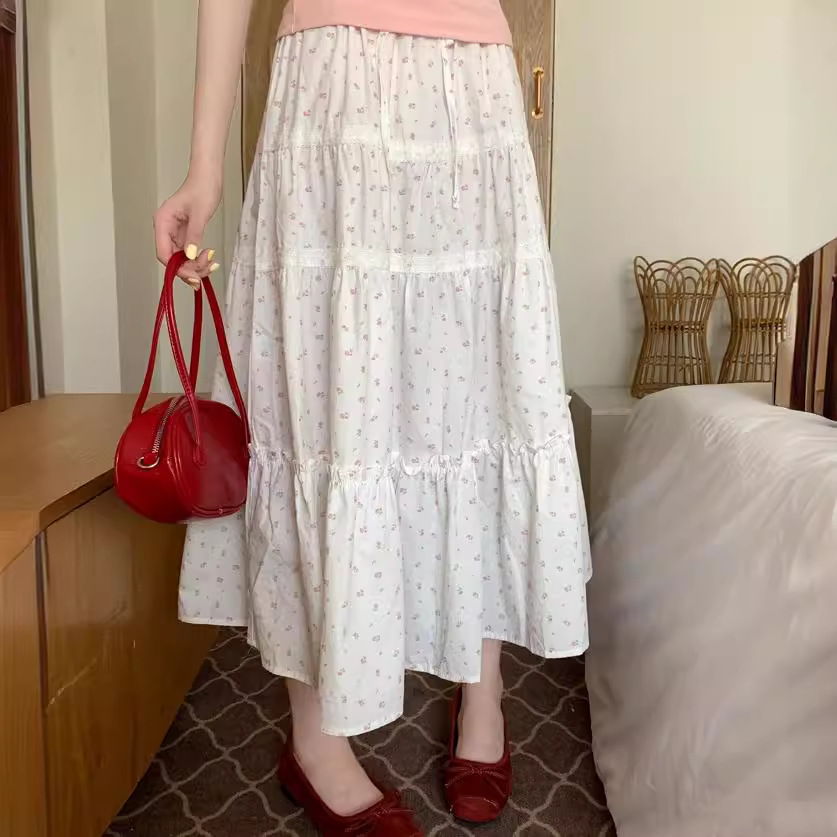 | nameOriginal | Sweet Age-Reducing Lace Stitching Heavy Industry White Skirt Women's Summer All-Match A- Line Draping Ruffled Skirt |