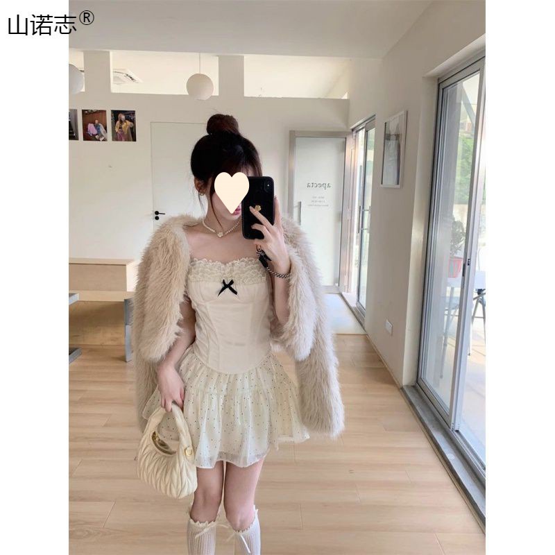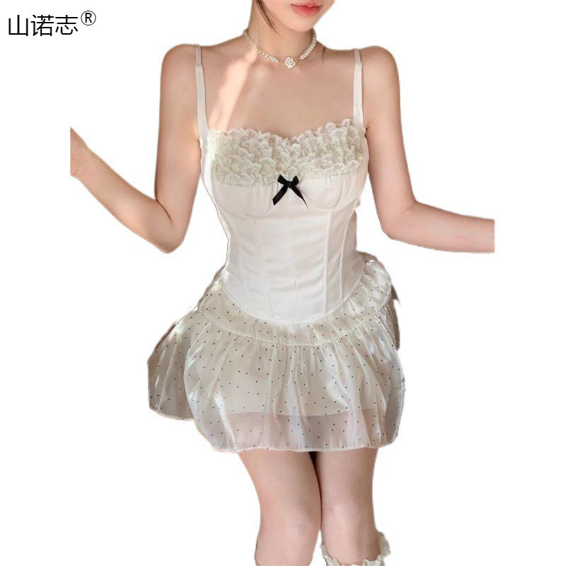 | nameOriginal | Sweet Age-reducing suit Lace Stitching Camisole Women's Early Spring Wave Dot Skirt Two-piece Hair |