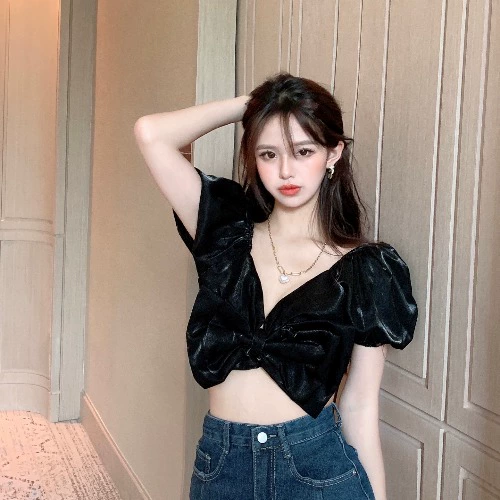 | nameOriginal | Sweet and chic high waist bow hottie white shirt |