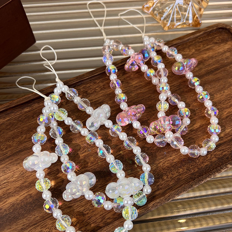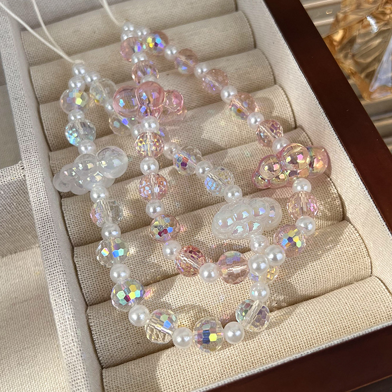 | nameOriginal | Sweet and colorful blingbling Crystal Pearl cloud mobile phone chain girl beaded chain anti-lost mobile phone pendant |