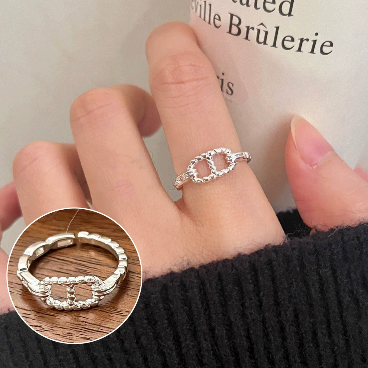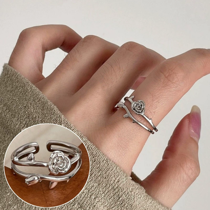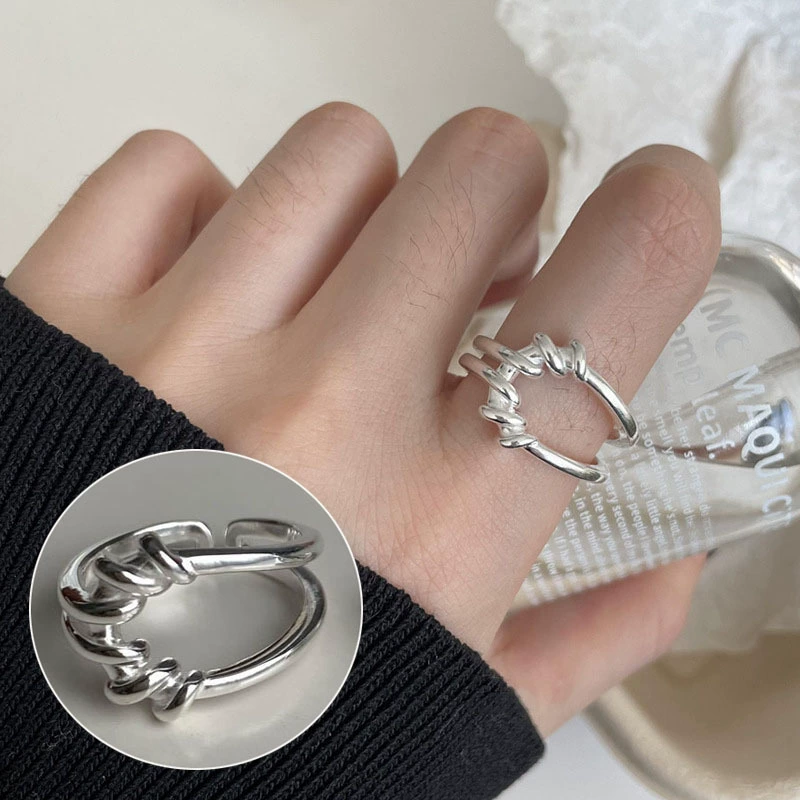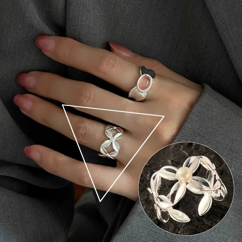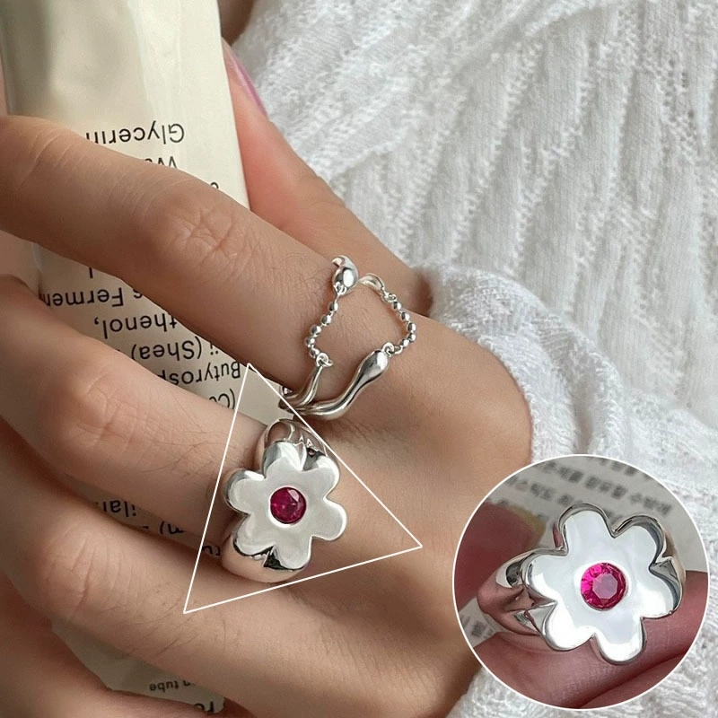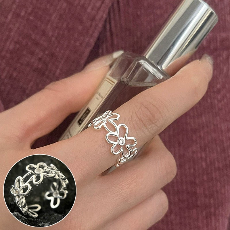 | nameOriginal | Sweet and cool flower ring for women with exaggerated temperament, geometric lines wrapped around S925 silver open ring ins index finger ring trend  |