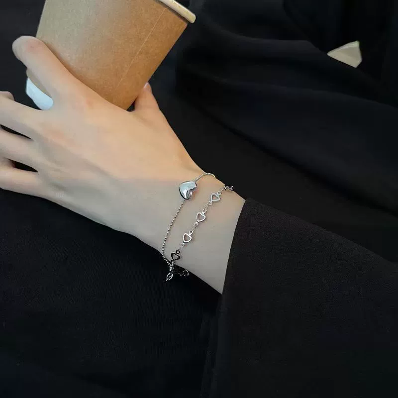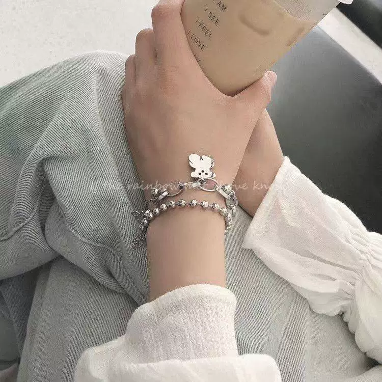 Sweet and cool love bear double-layer bracelet for women, retro cold style, ins student, versatile couple, bestie bracelet for men