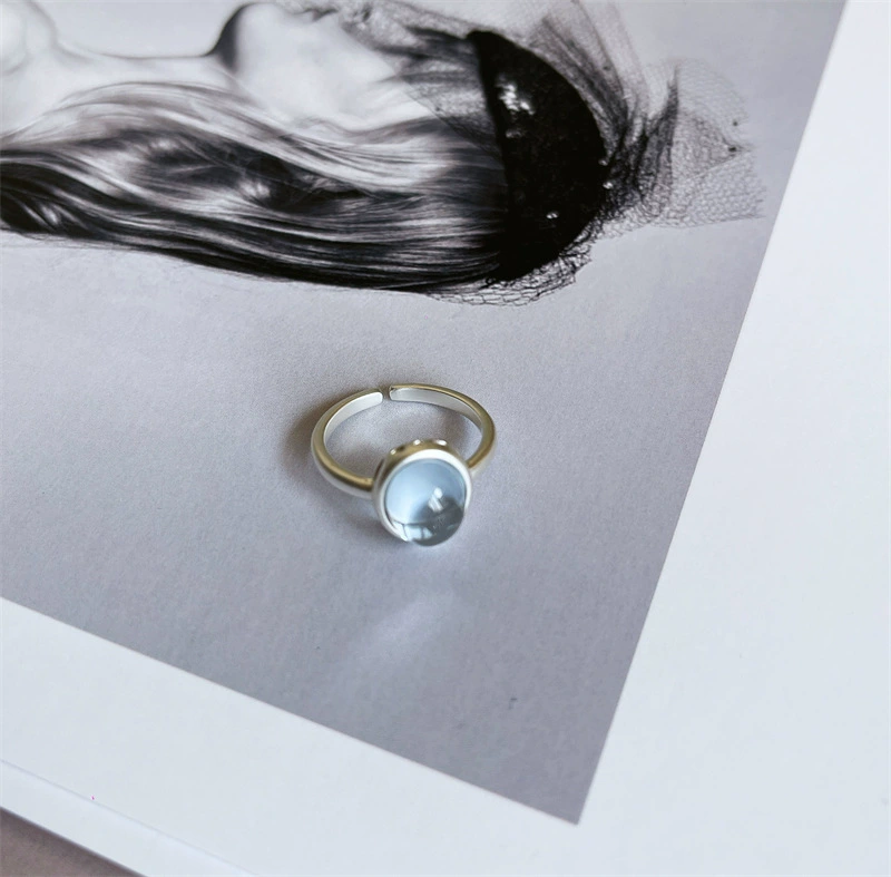 | nameOriginal | Sweet and cool oval sky blue zircon ring for women French style retro broken silver frosted S925 silver open index finger ring trendy |