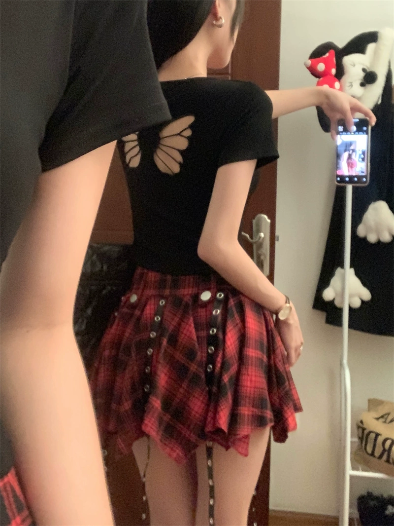 | nameOriginal | Sweet and cool personalized hollow butterfly plaid short-sleeved T-shirt |