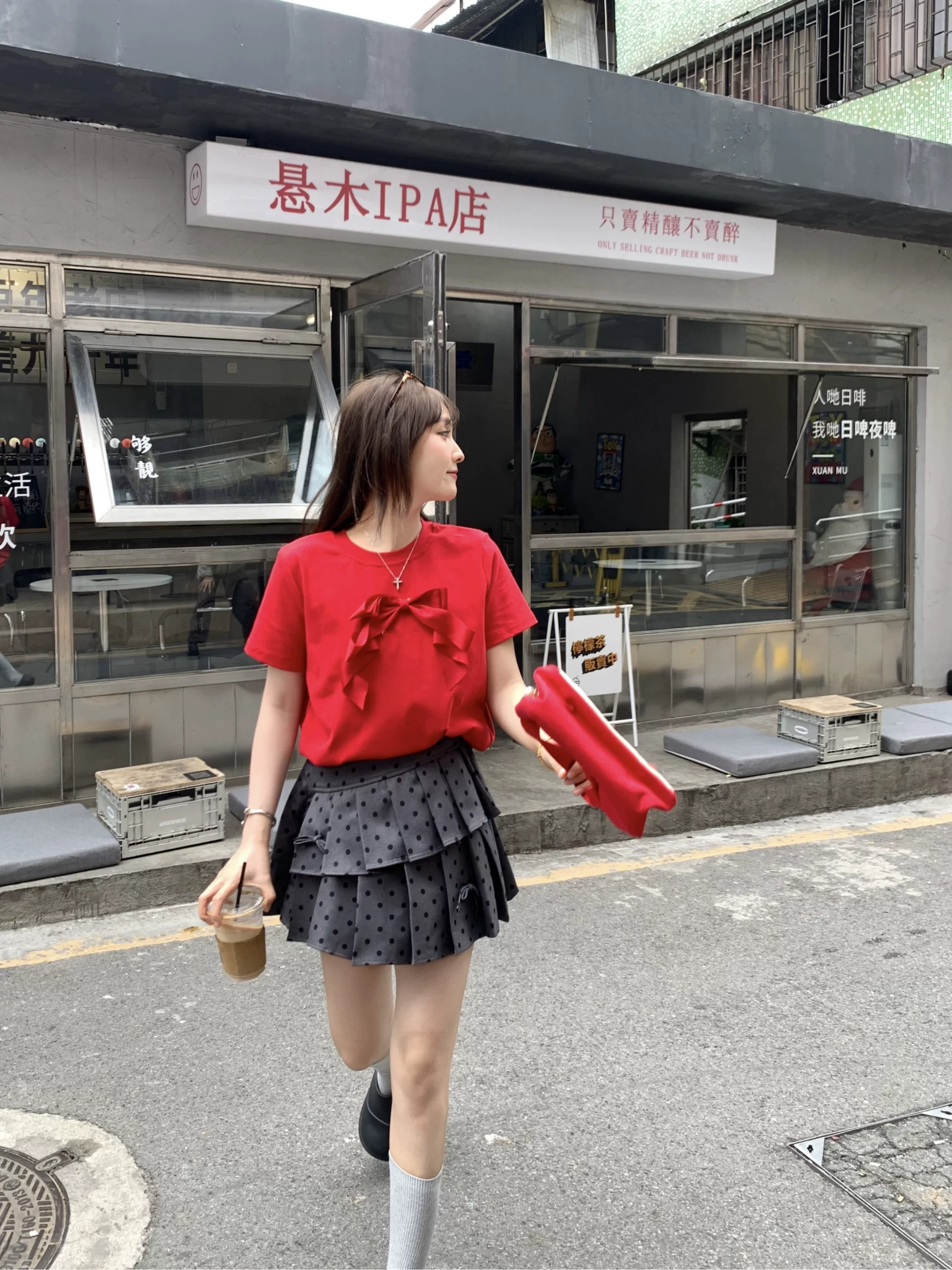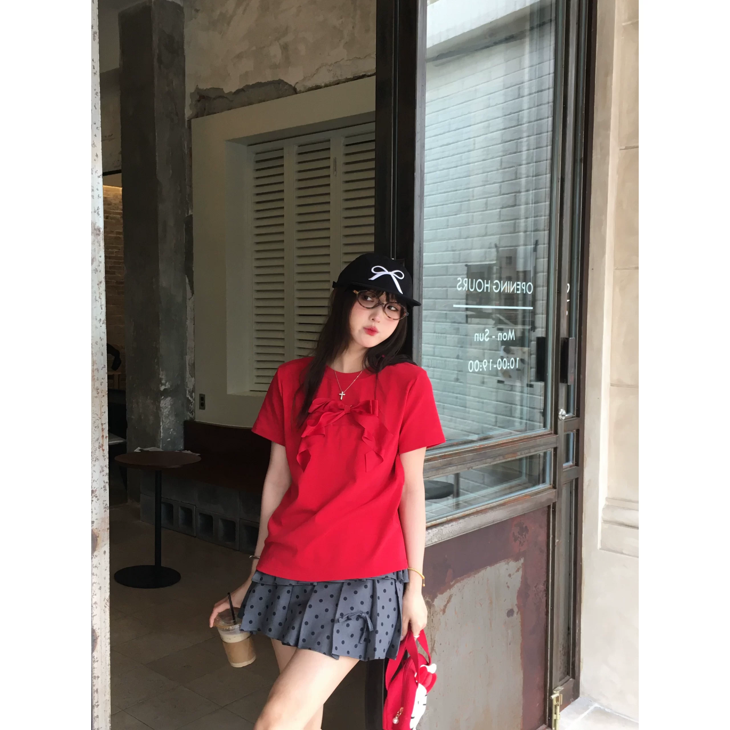 Sweet and cool retro style fashion suit for women summer 2024 new three-dimensional bow T-shirt polka dot pleated skirt