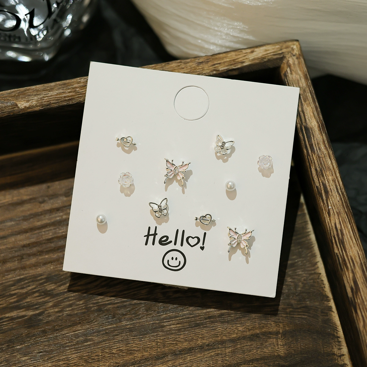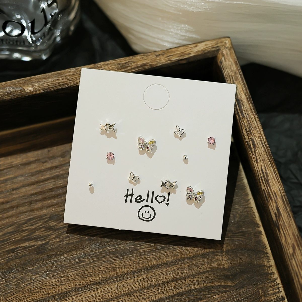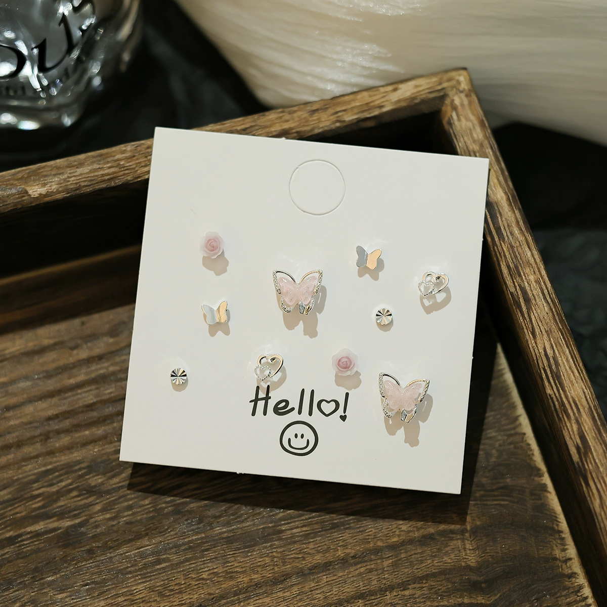 Sweet and cute stud earrings ins glitter pink butterfly silver needle
