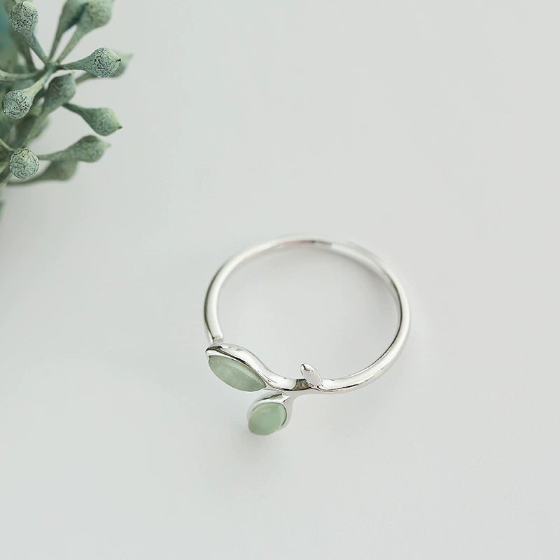 | nameOriginal | Sweet and cute sterling silver small fresh green leaf ring |