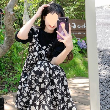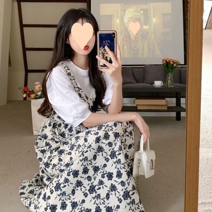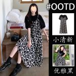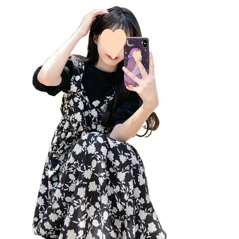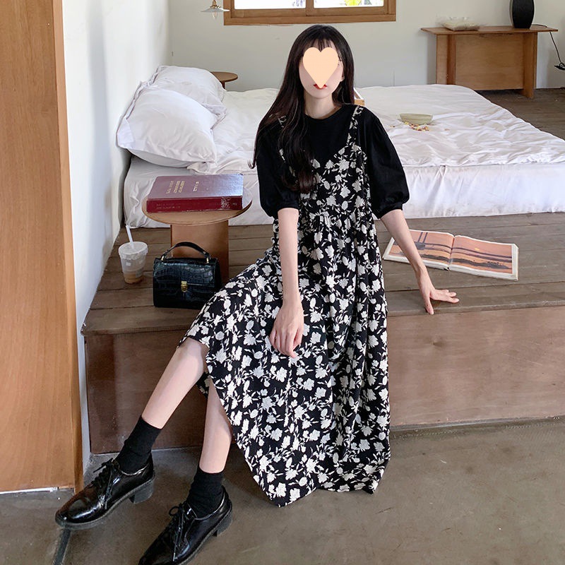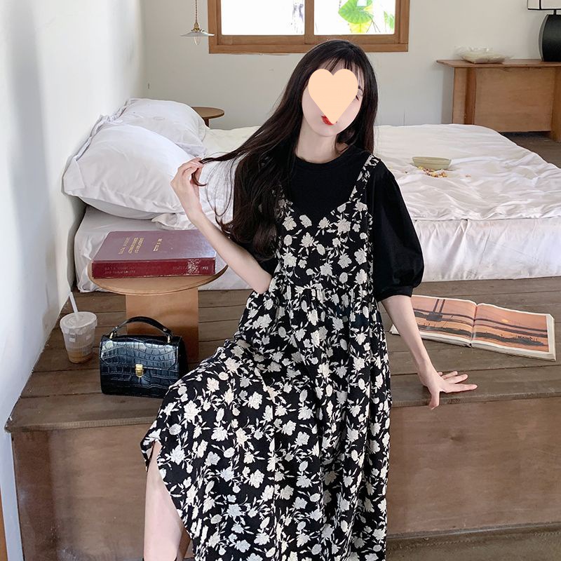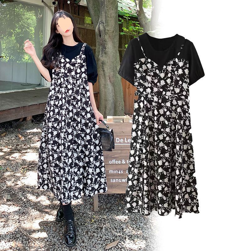 | nameOriginal | Sweet and Fresh Cute Fake Two-piece Strap dress Summer New Loose Flesh Covering Chiffon Floral Over-the-knee Long Dress |