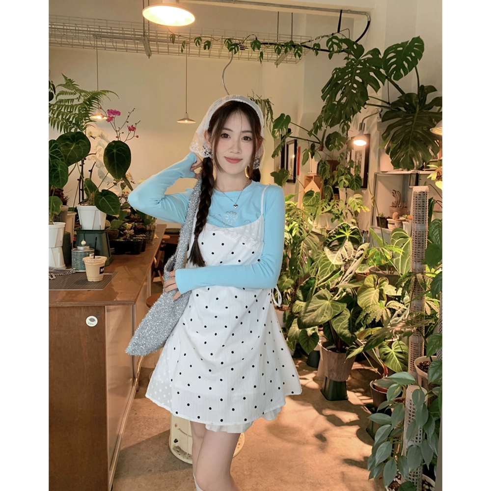 | nameOriginal | Sweet and gentle polka dot layered bottoming suspender skirt |